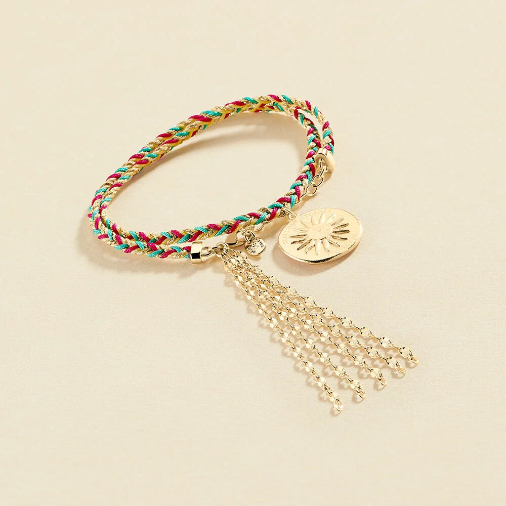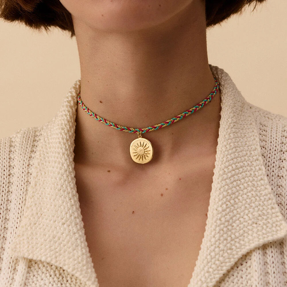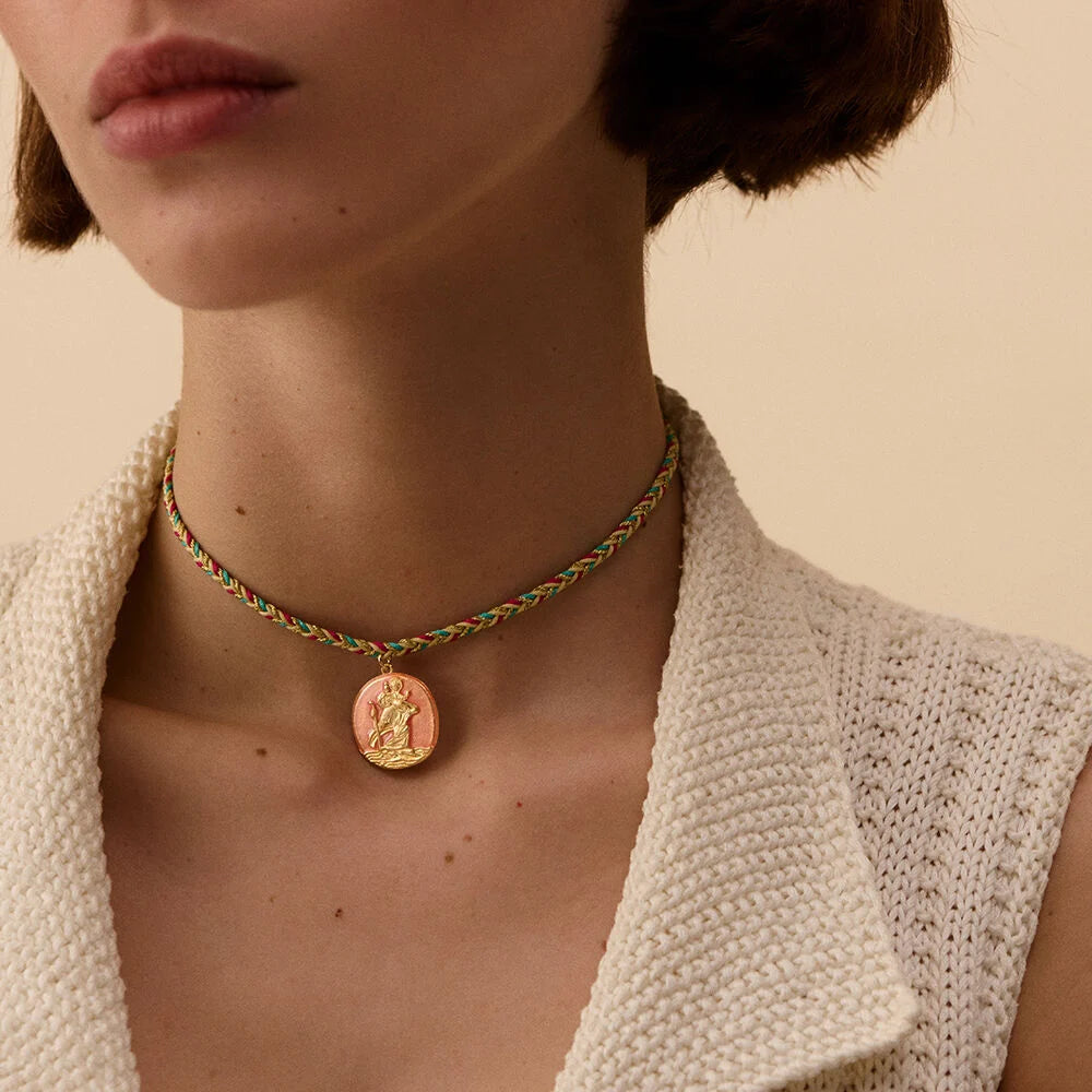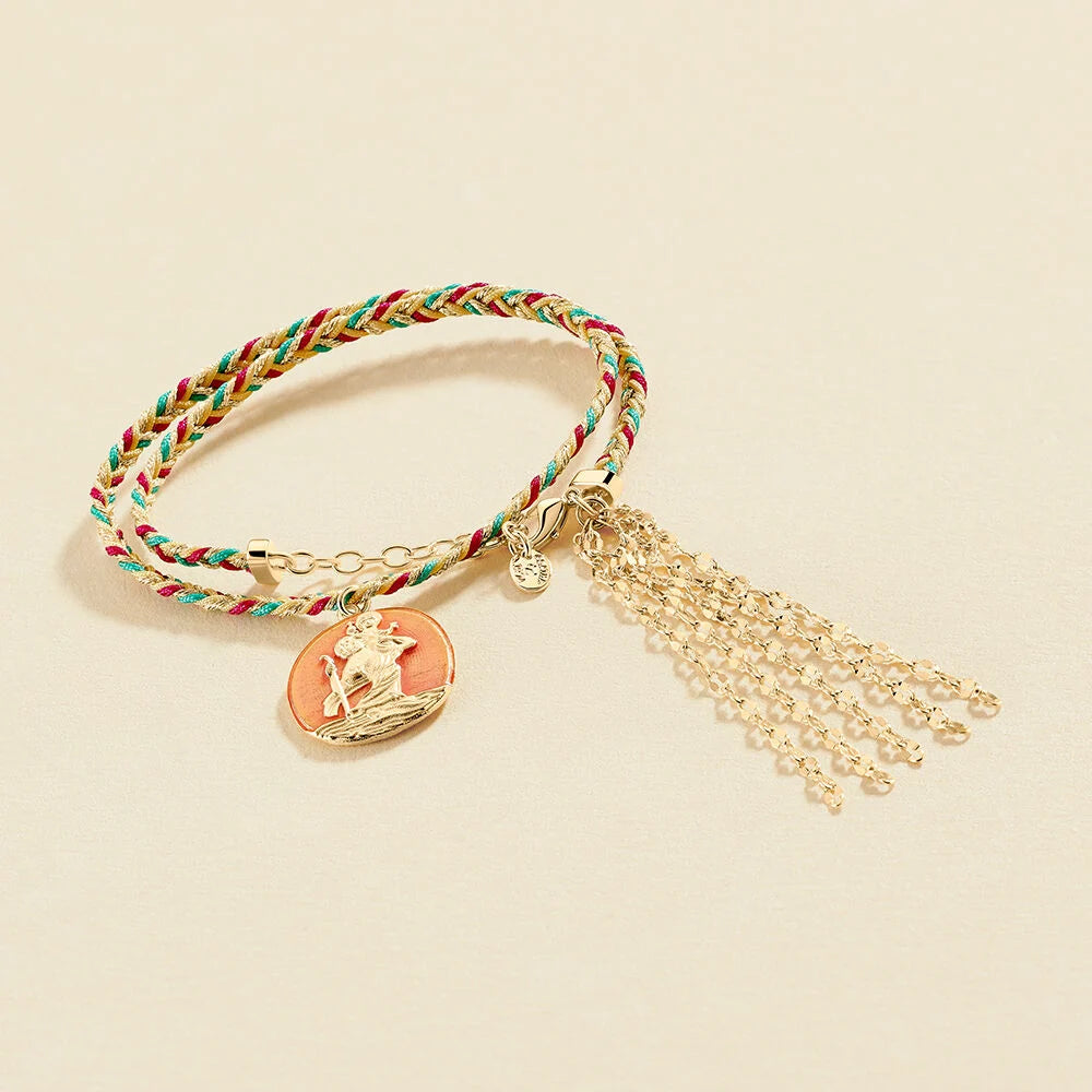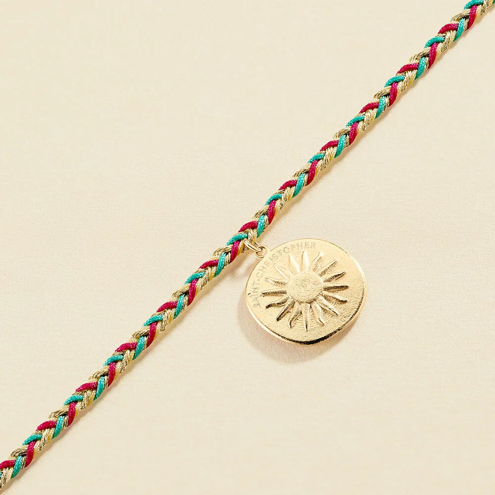 Pulsera Collar AGATHA PARIS Vesper con hilo trenzado multicolor y medalla de San Cristóbal.