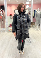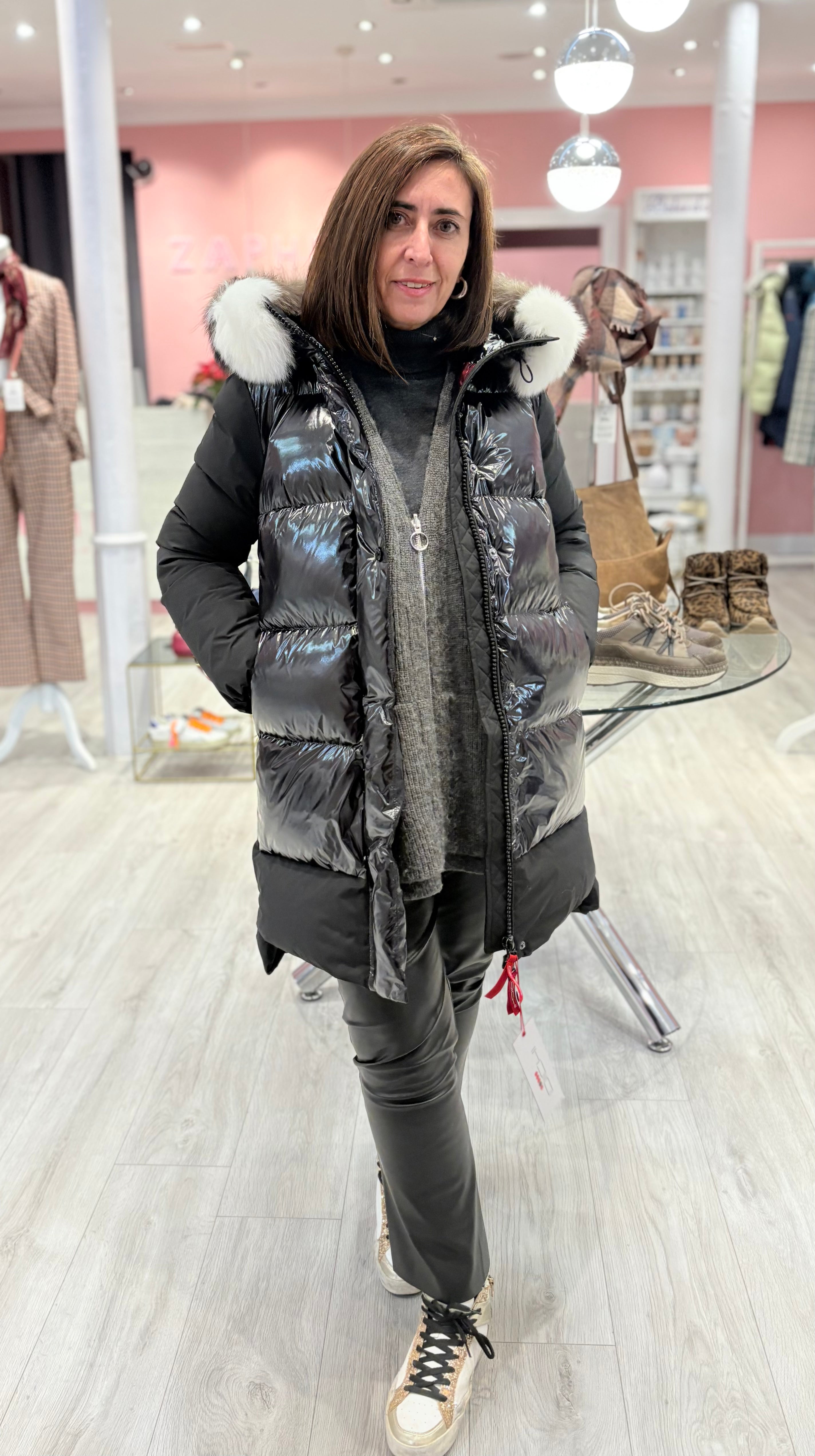 El abrigo DICHI es una prenda cómoda, con corchetes en laterales que la hace muy funcional. El pelo es natural y desmontable, como en todos los plumíferos DICHI.
