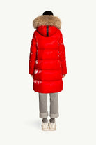 Plumas DICHI Morena destaca por su tejido brillante de alta calidad y una capucha con pelo natural que combina sofisticación y funcionalidad.