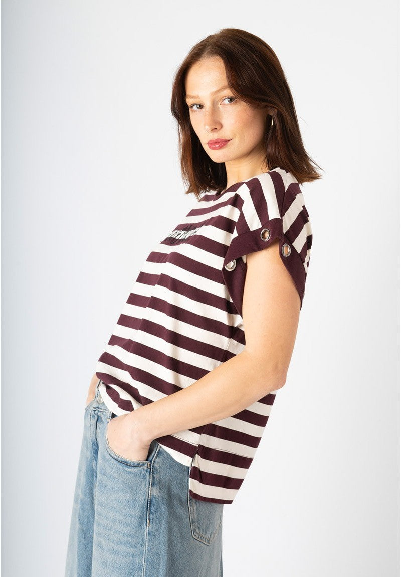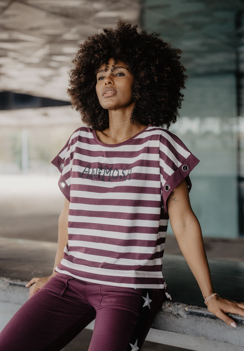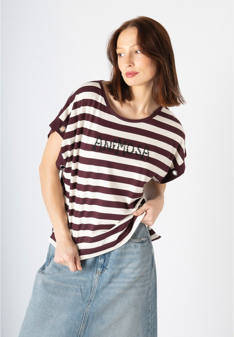 Camiseta ANIMOSA Estrellas de rayas con ollaos niquel oscuro en las mangas.