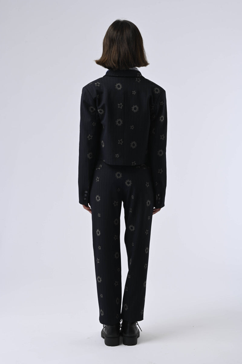 Pantalón ORFEO Travis recto de algodón en color marino con rayas y estampado de estrellas.
