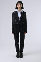 El pantalón ORFEO seducen por su estampado gráfico, que viste la silueta con una nota atrevida.