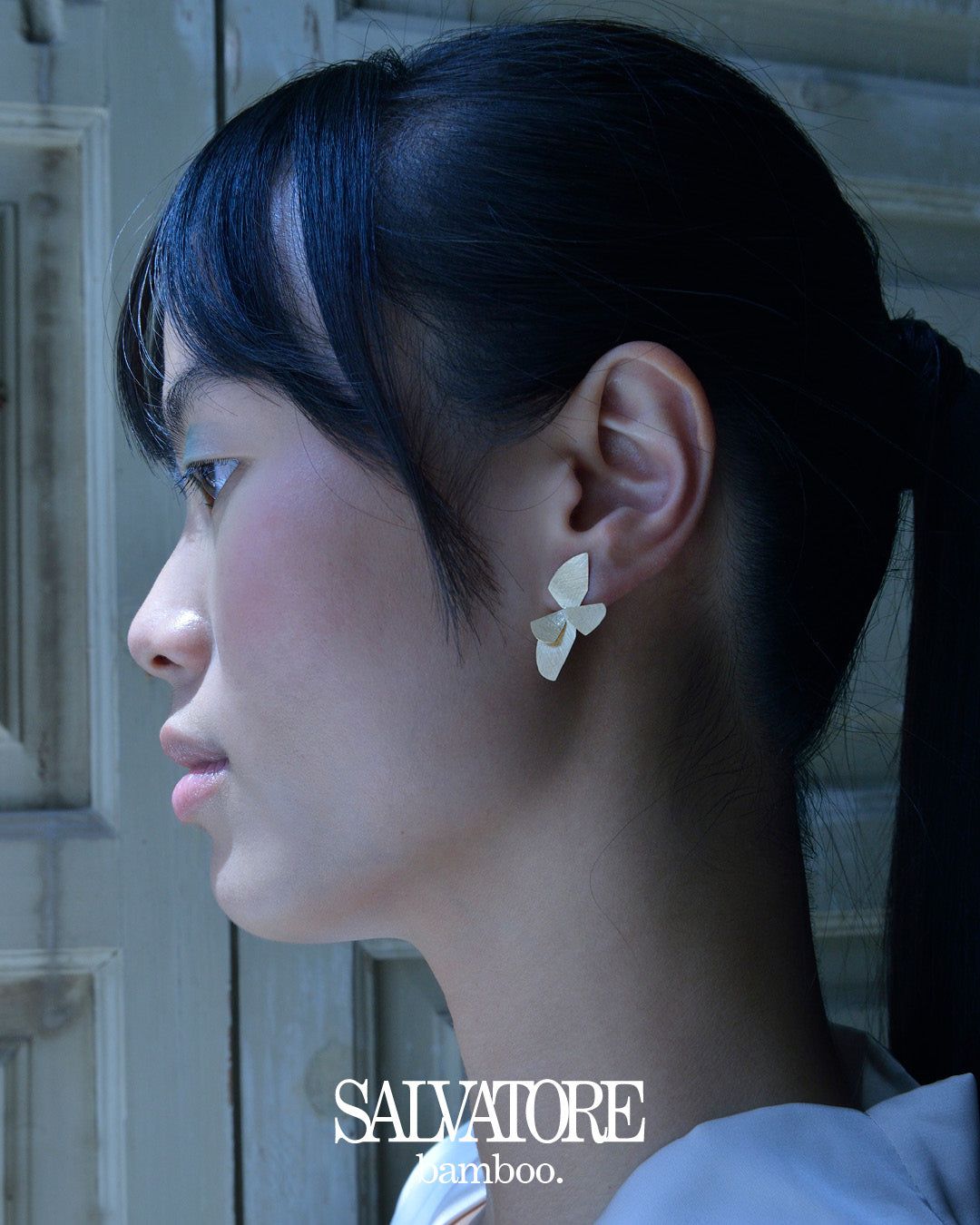 Pendientes SALVATORE PLATA 203A0376 realizado en plata de ley con baño dorado de pétalos sobrepuestos diamantado.