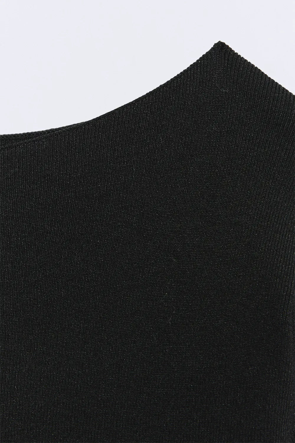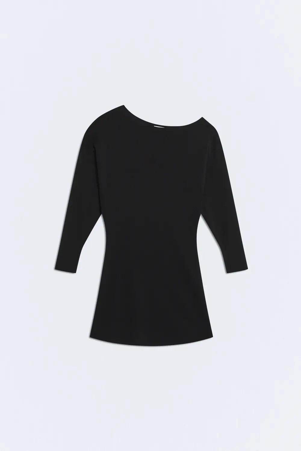 Vestido eseOese Debbie en color negro de punto y escote asimétrico.