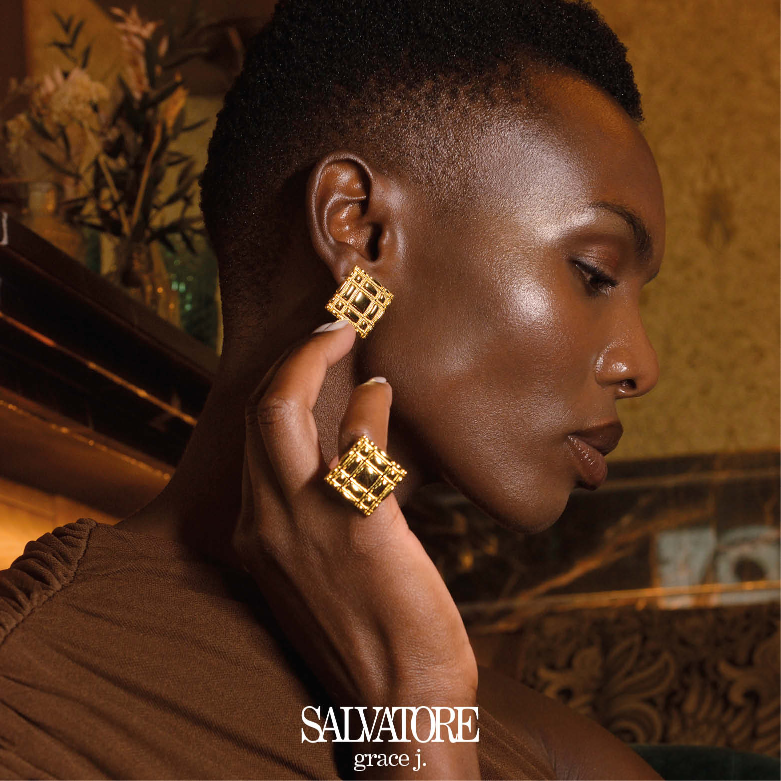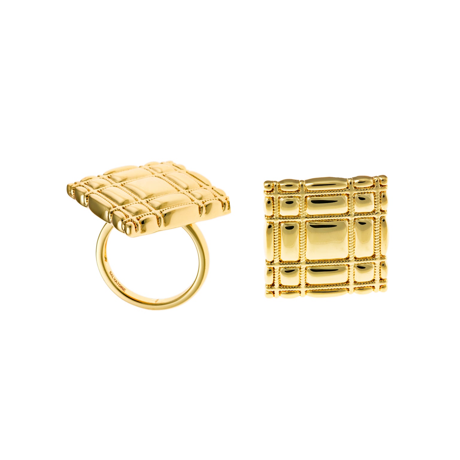 Anillo Salvatore Plata 151SM006 en metal dorado con forma de rombo con dibujo.