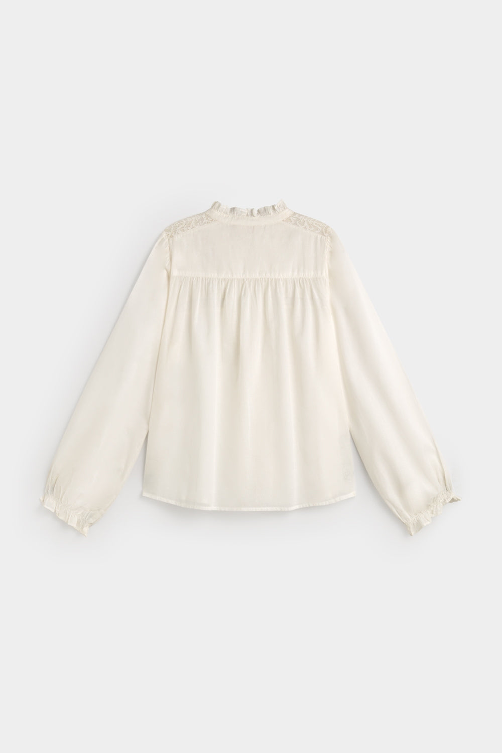 Camisa eseOese Aurelia en color crudo, estilo romántica con bordados y puntilla.