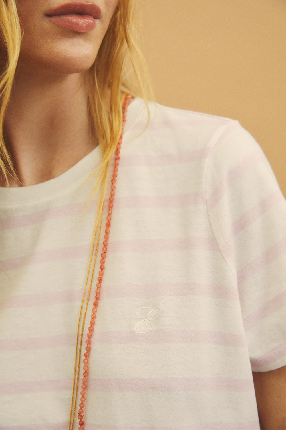 Camiseta eseOese stripes rosa con bordado de logo.