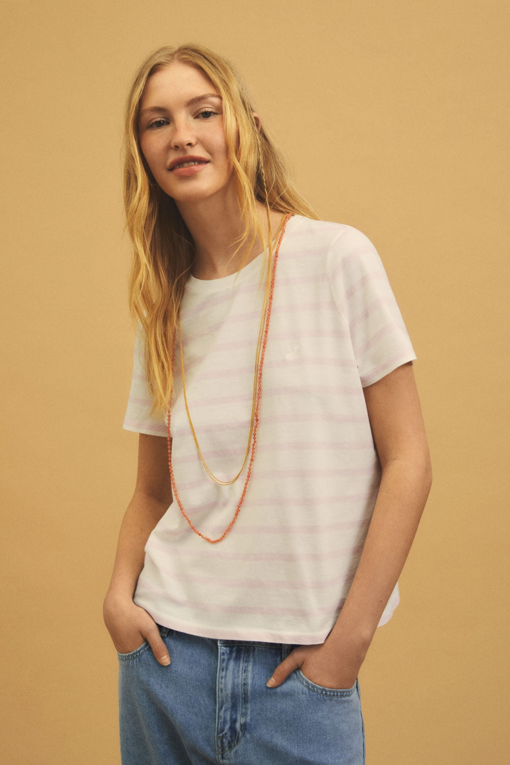 La camiseta eseOese stripes rosa es básica de algodón orgánico.