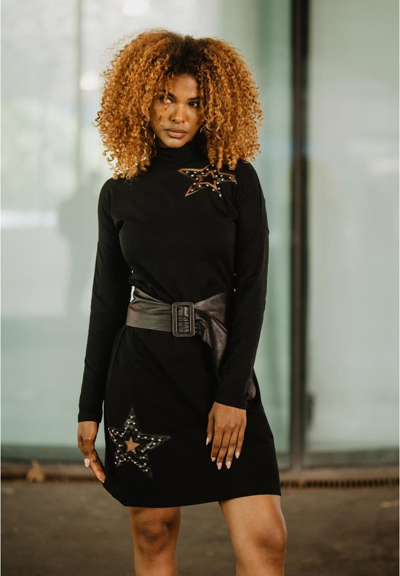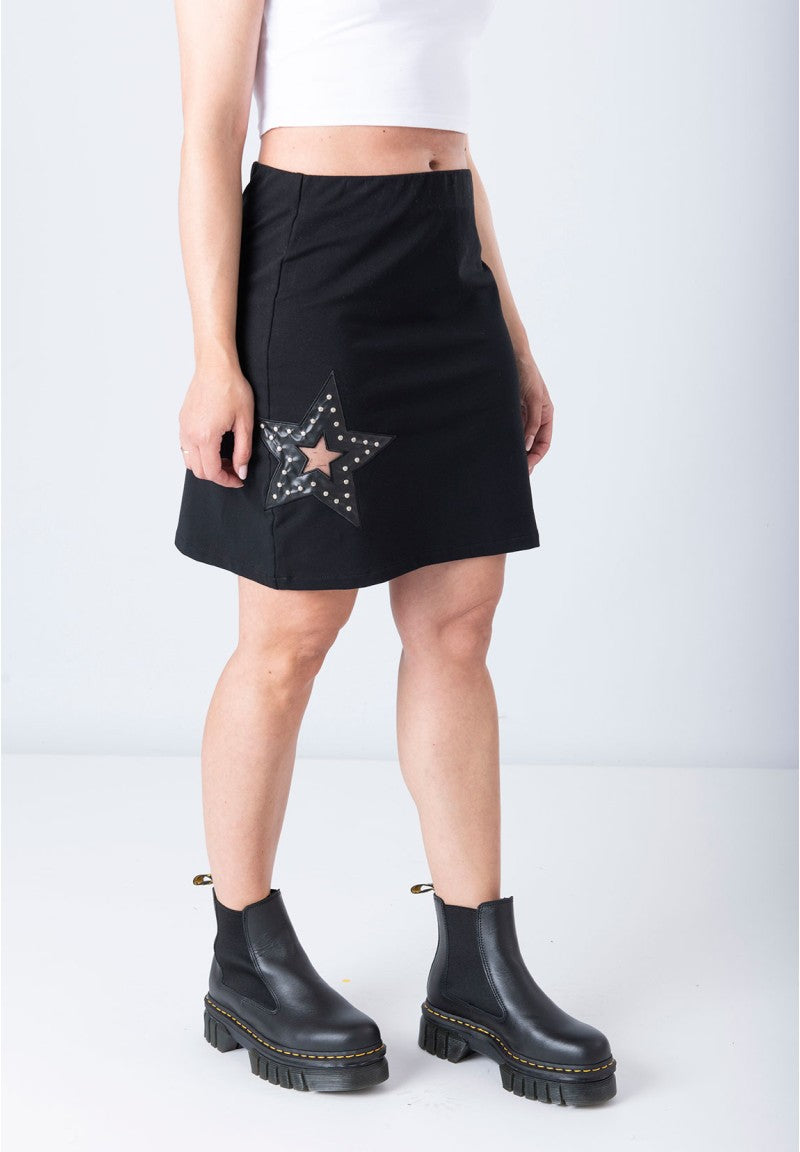 Falda Animosa Estrella en color negra y detalle de estrella en piel y tachuelas.