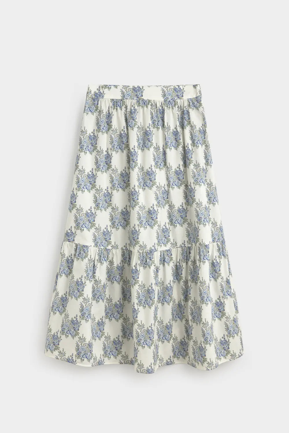 Falda eseOese Coimbra con estampado floral, con detalle de fruncido en el bajo para dar más vuelo.