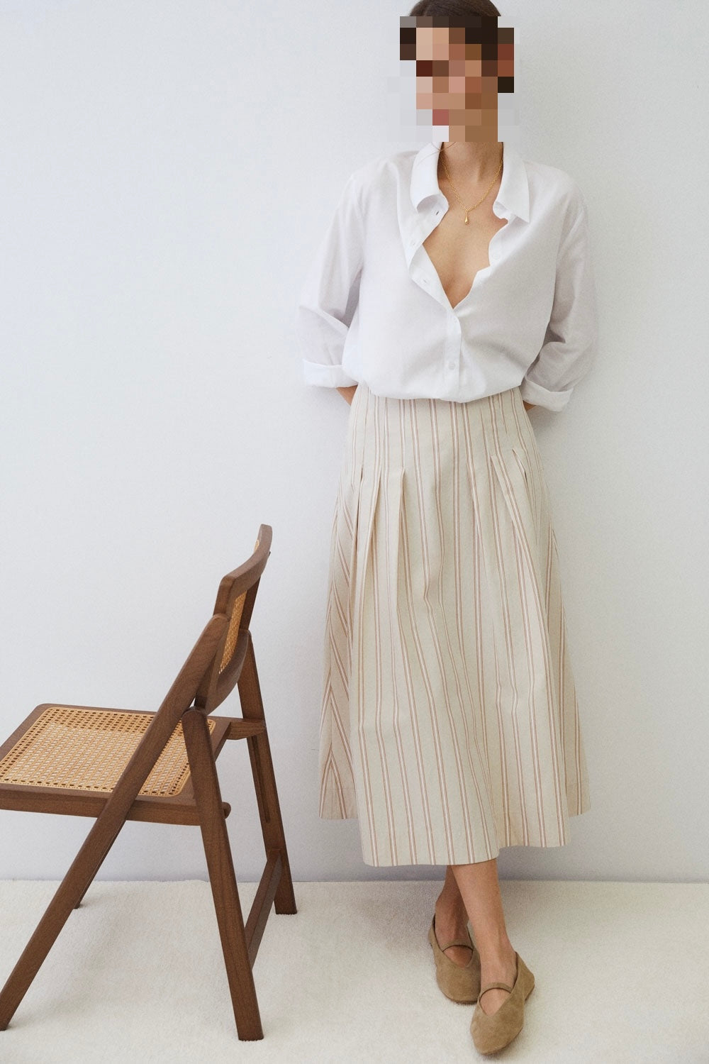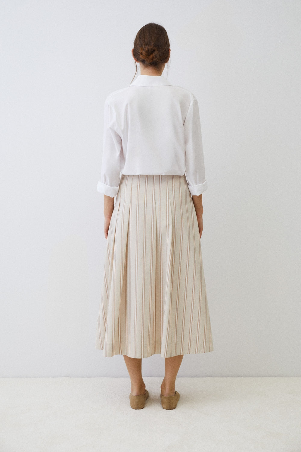 Falda eseOese Occitane con estampado de rayas y detalle de tablas.
