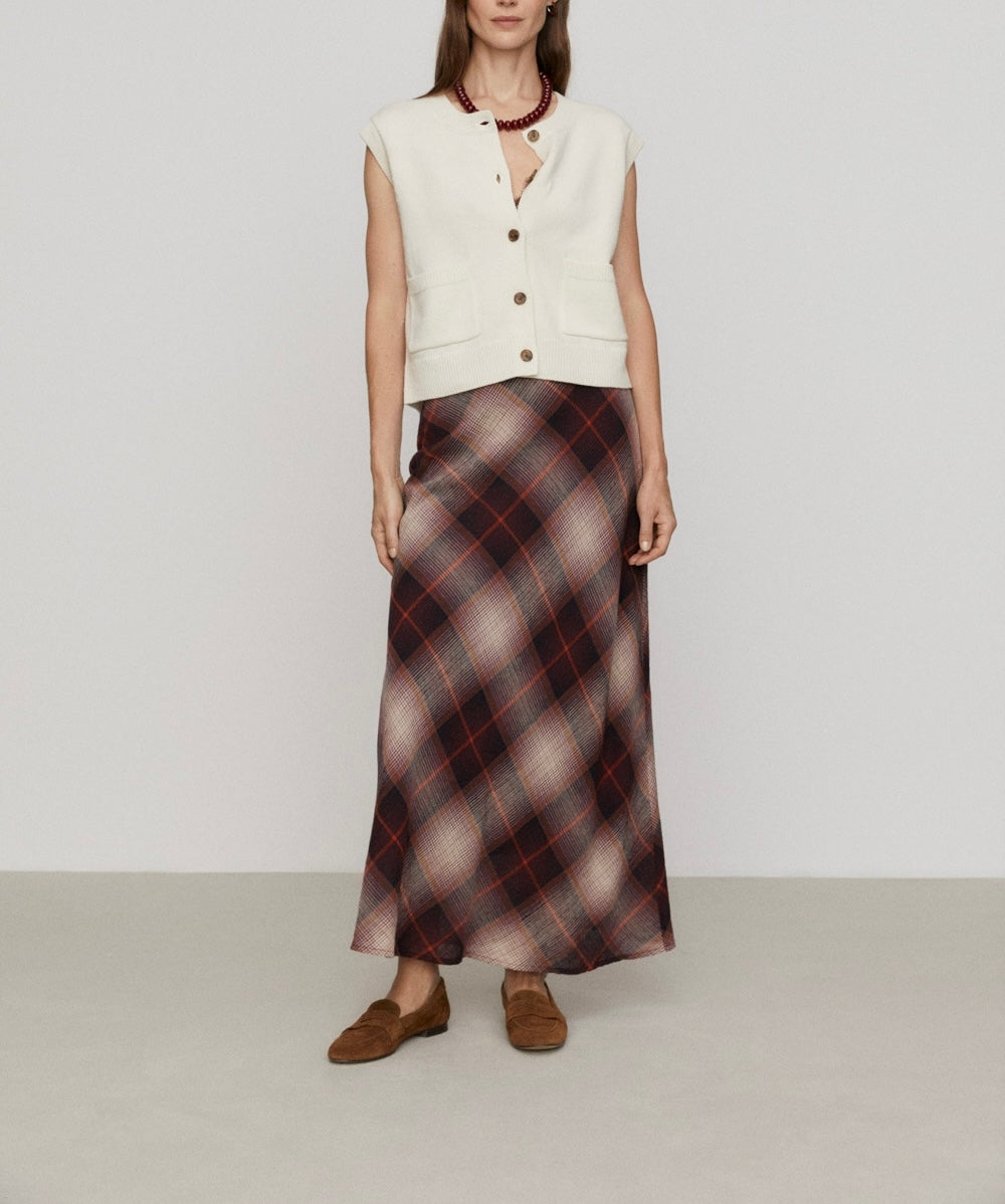 Falda eseOese Sussex larga con estampado de cuadros. Fiting evasé.