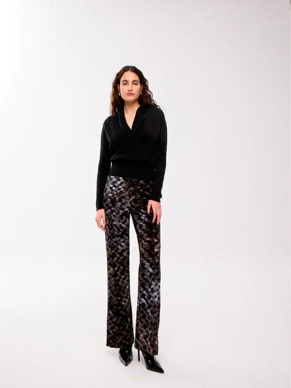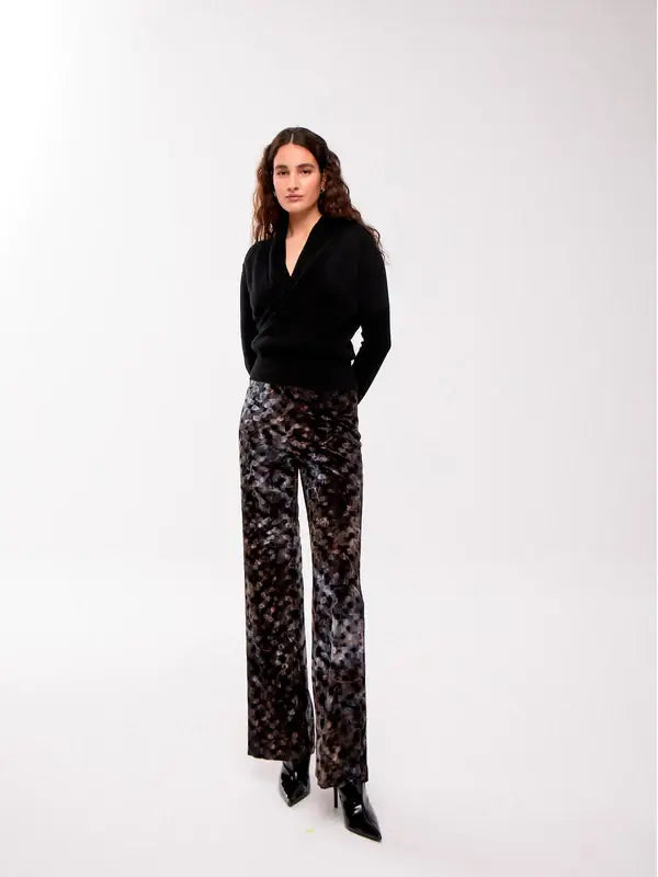 Pantalón Mioh Irons de terciopelo con estampado en tonos grises.