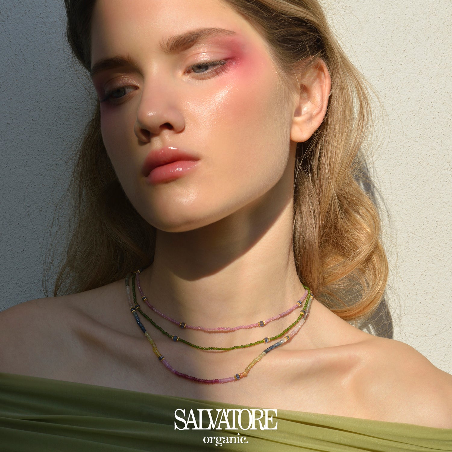 Collar SALVATORE PLATA 167C0199 en plata chapado dorado y piedras fachadas en verde.