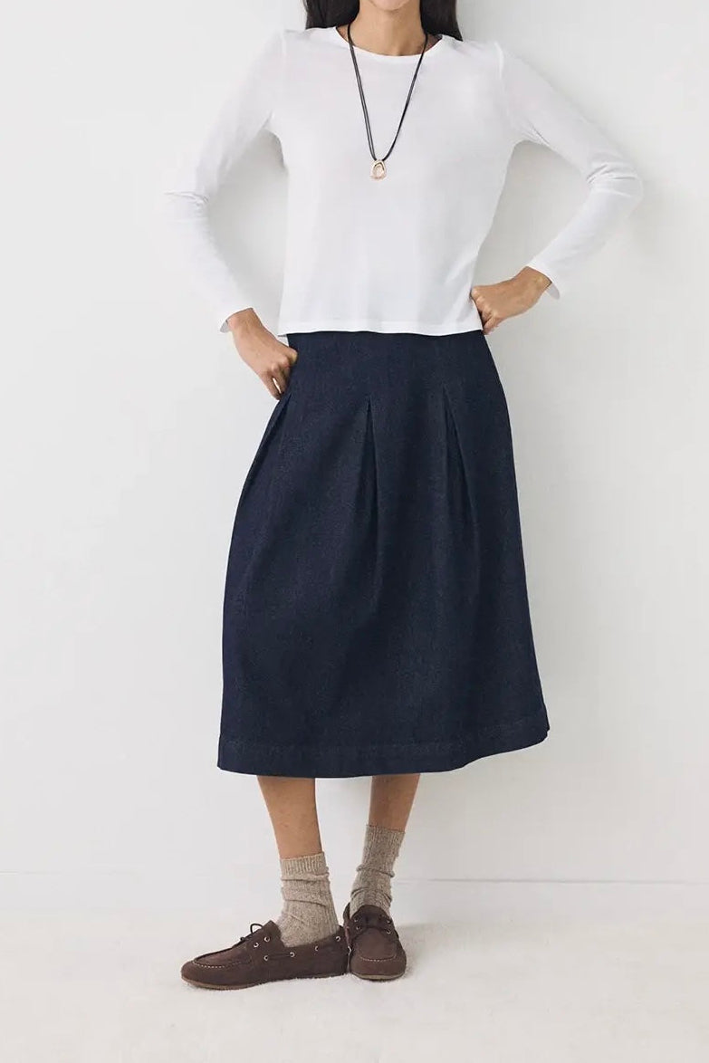 Falda eseOese denim midi con pliegues y fiting evasé.