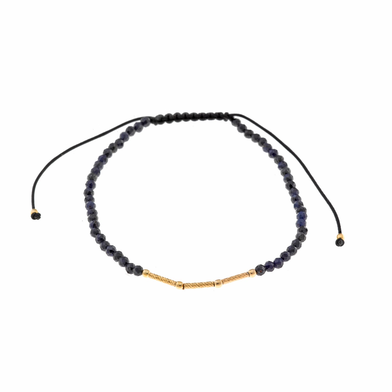 Pulsera SALVATORE PLATA con bolitas facetadas, barra en plata dorada e hilo negro ajustable