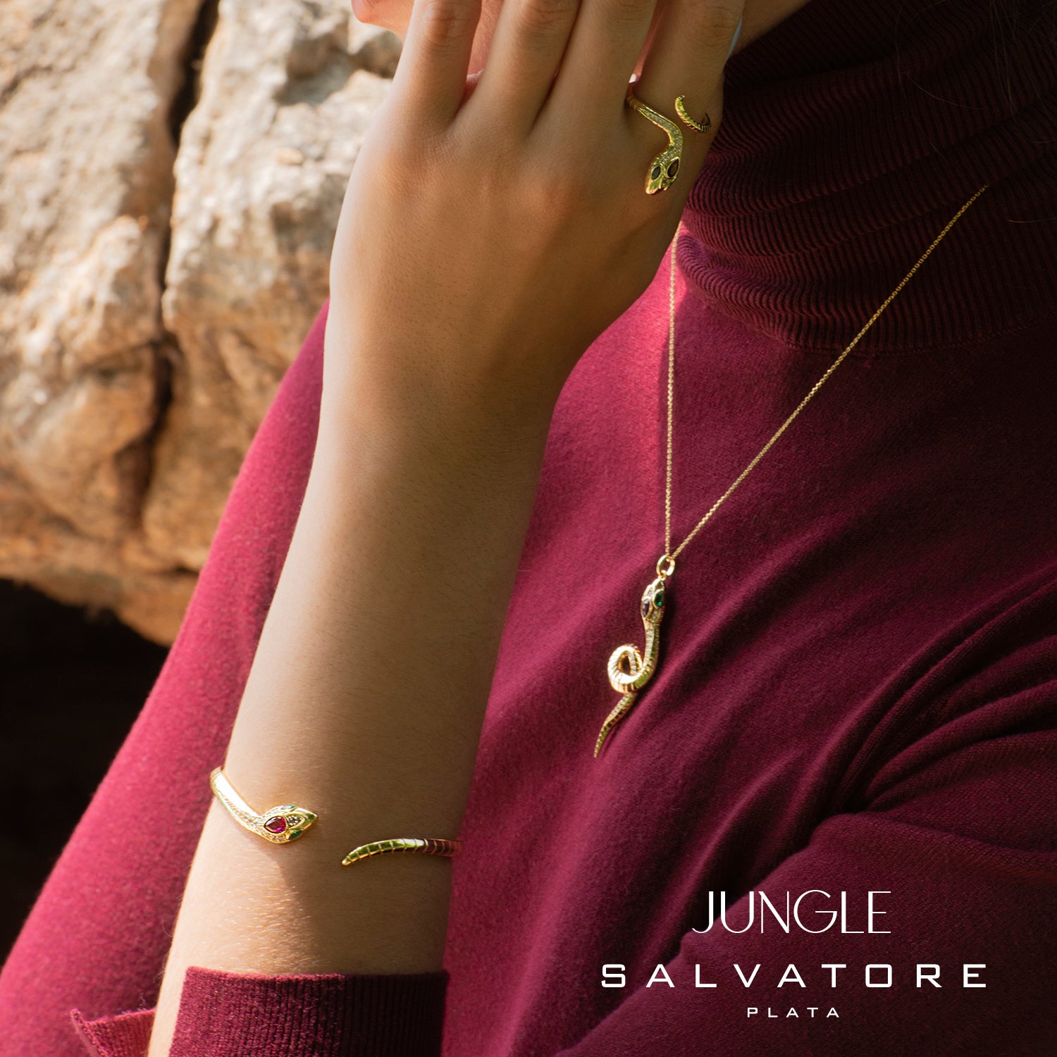 Pulsera Salvatore Plata serpiente con circonitas y chapado oro.