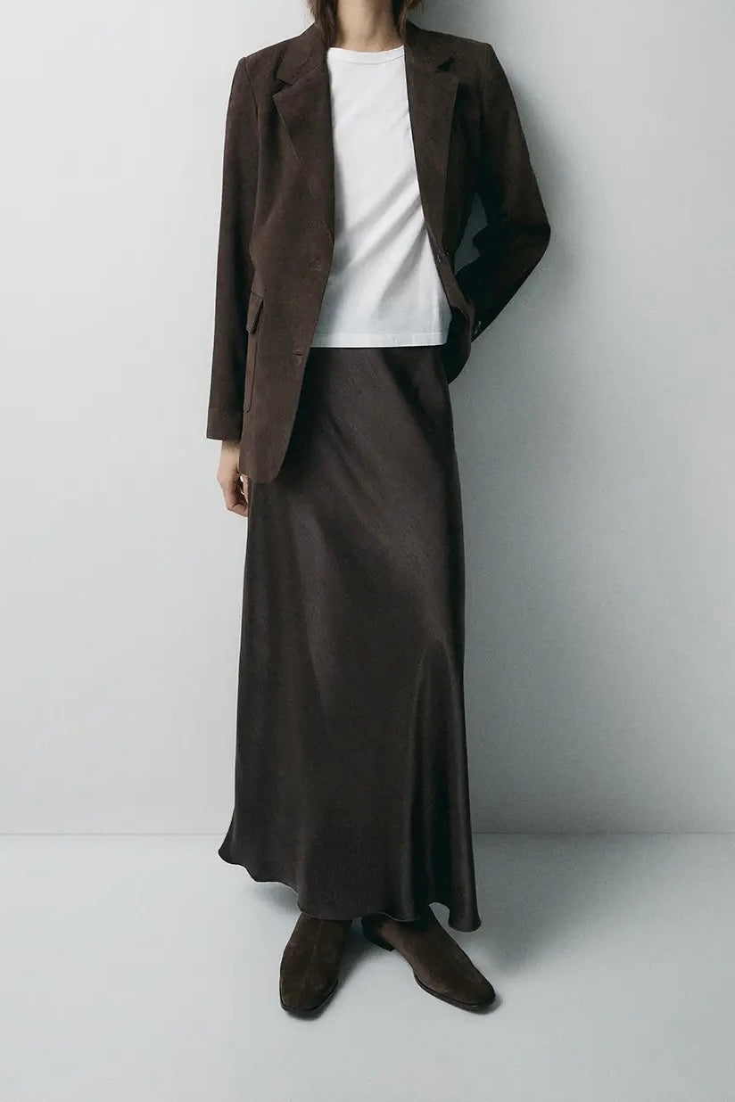 Falda eseoese Ava larga de satén al bies. Con goma en la cintura.