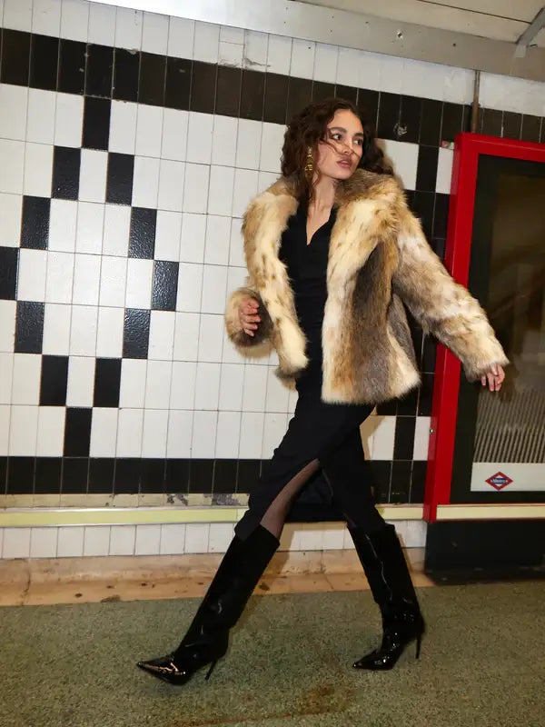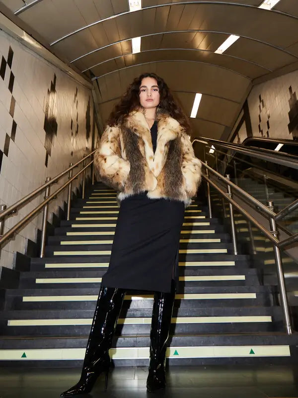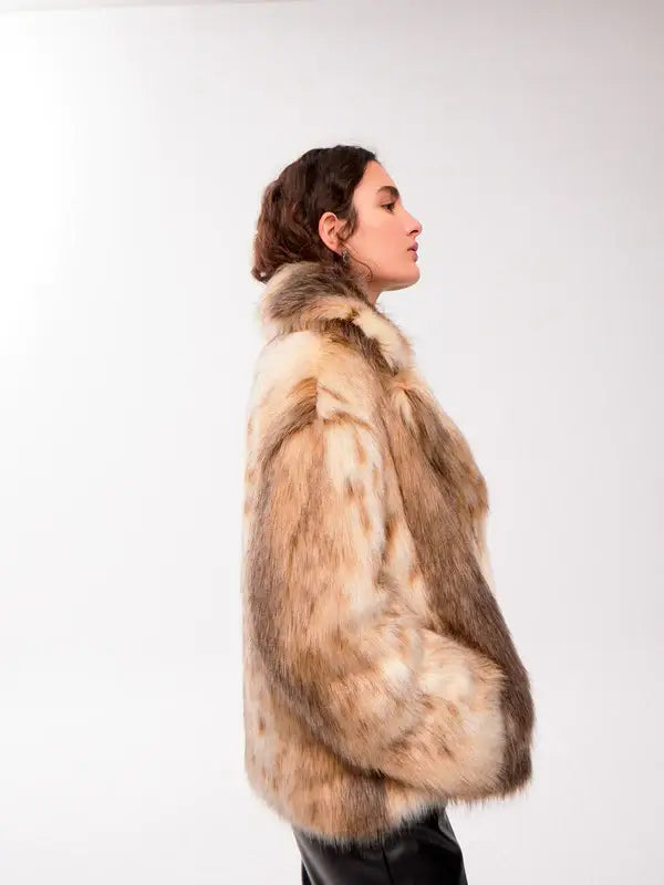 Abrigo Mioh Artist corto tipo chaquetón efecto zorro, y con bolsillos laterales.