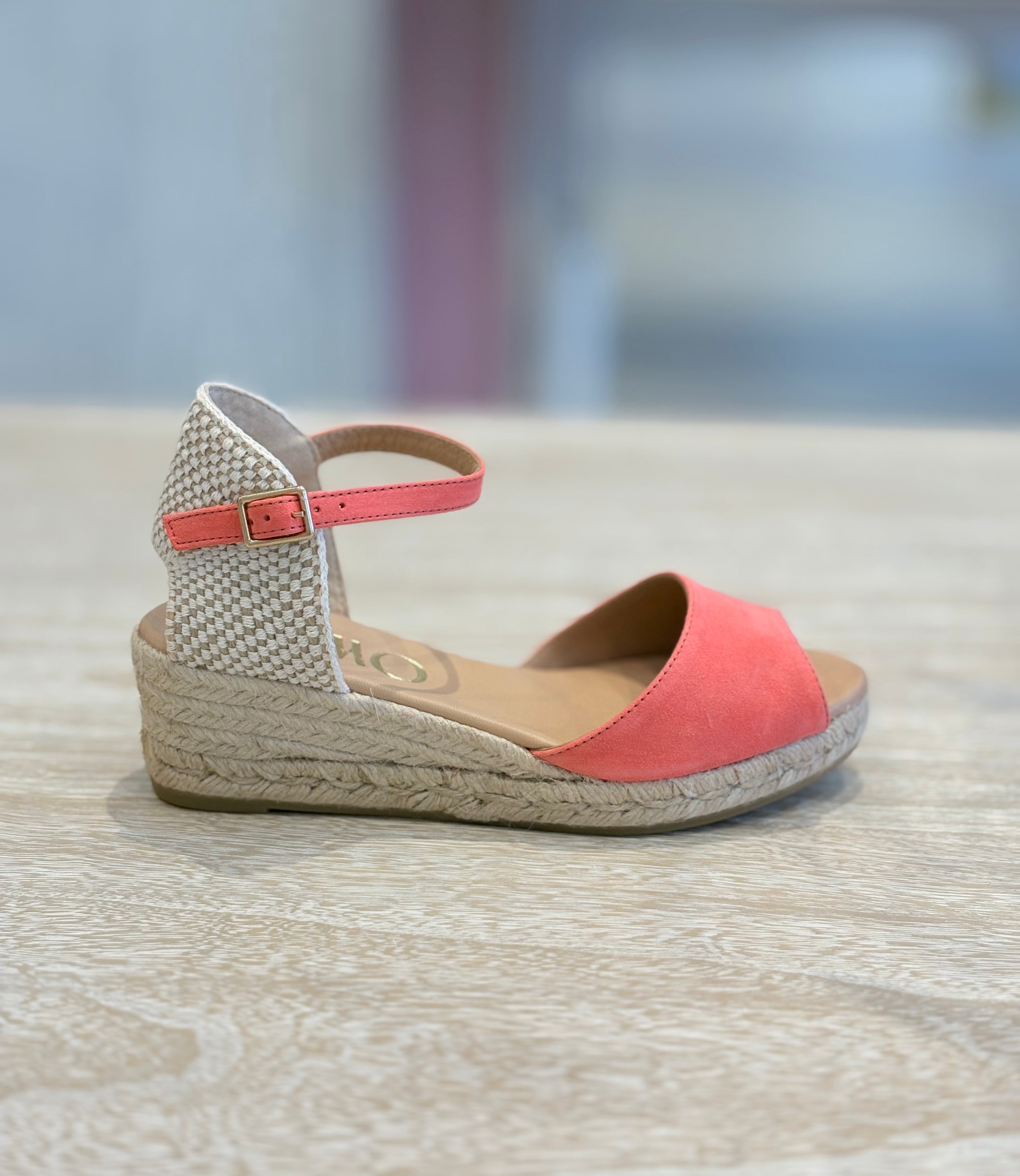 Alpargata GAIMO Sedal en color coral de piel suave y talonera con cierre.