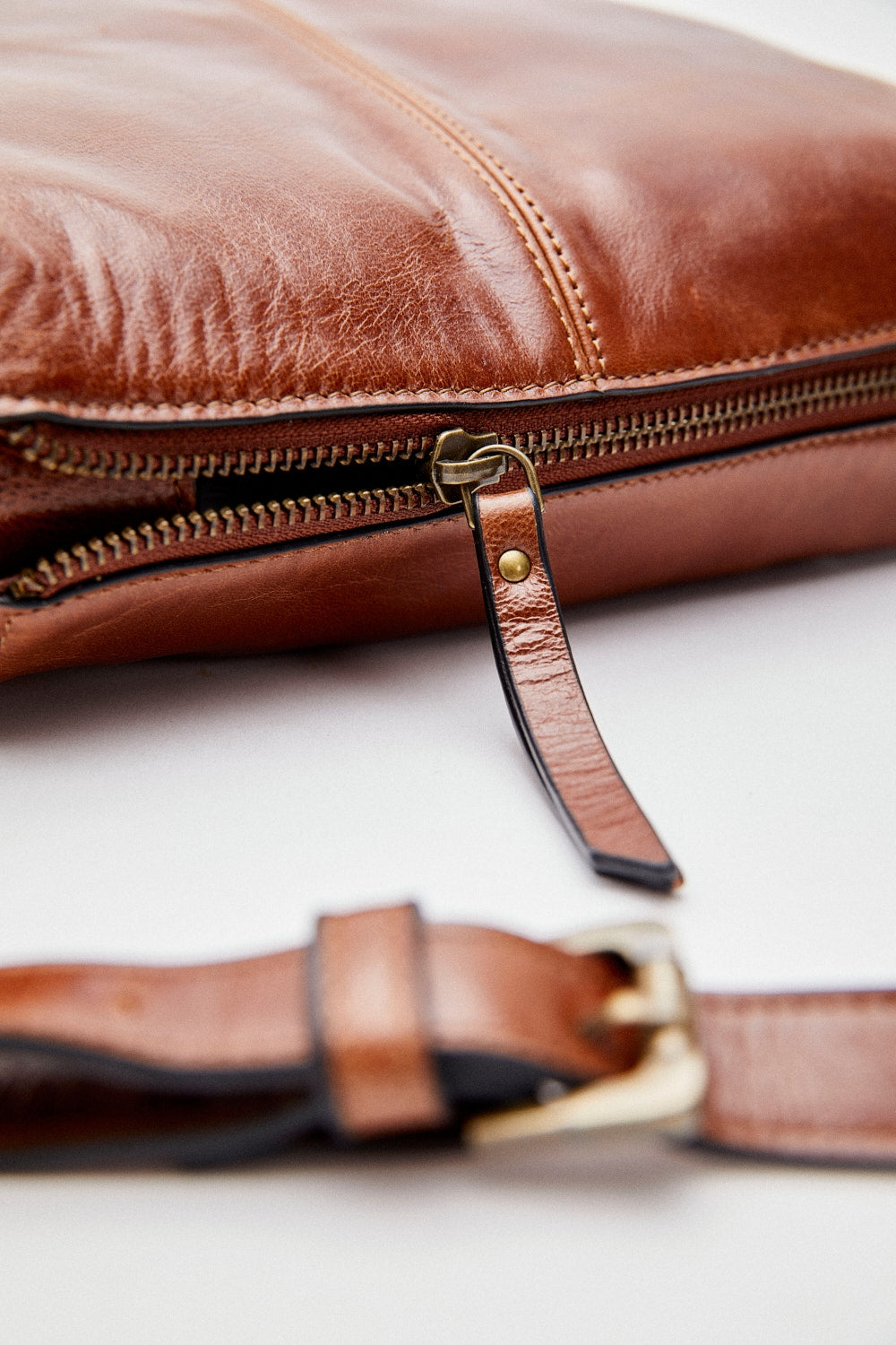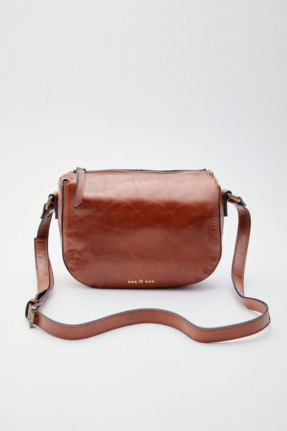 Bolso eseOese Felippa en color marrón, estilo bandolera de piel con cierre cremallera.