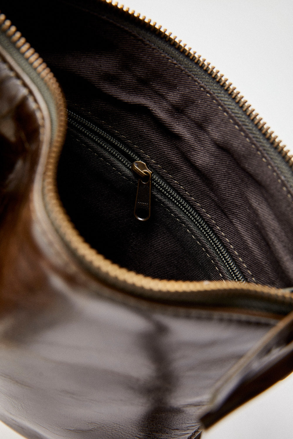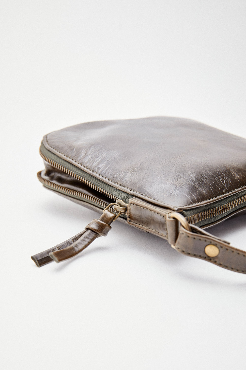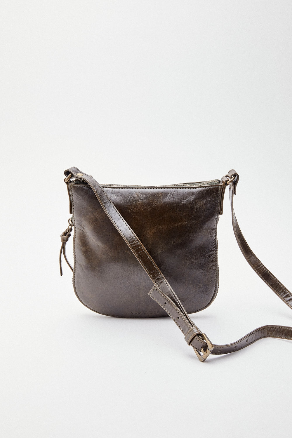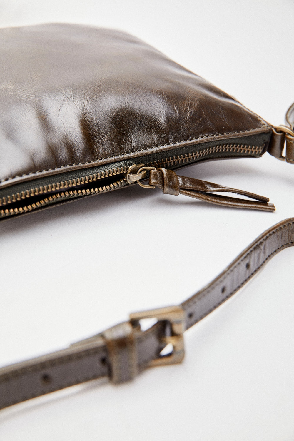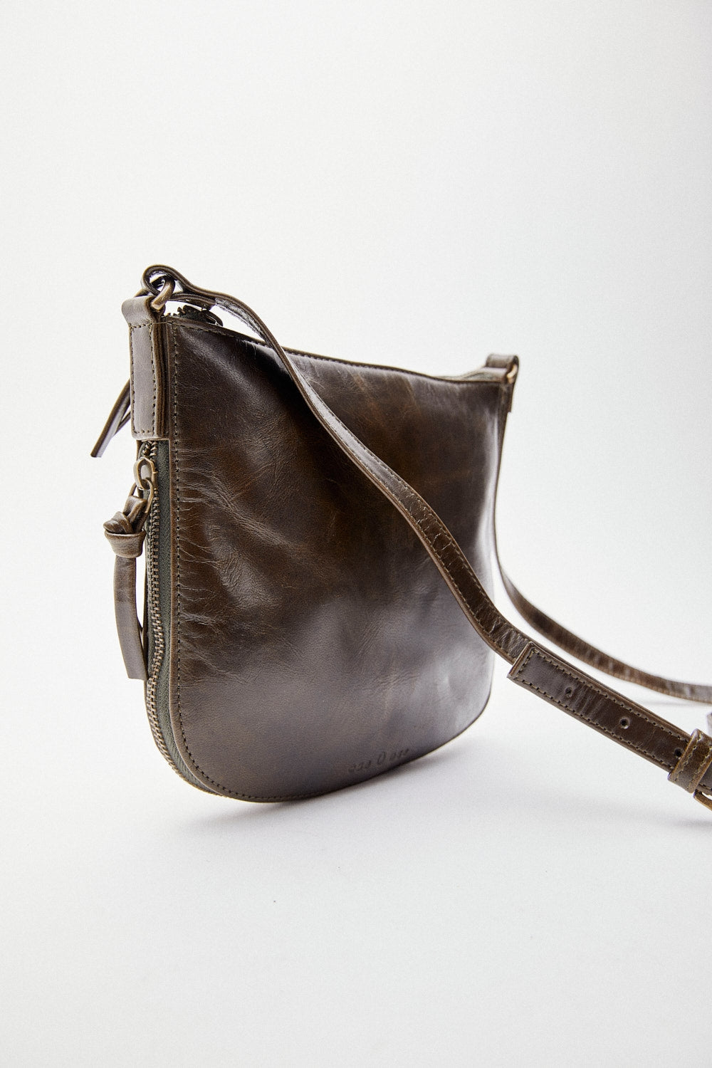 Bolso eseOese Martina verde muy oscuro de piel, bandolera con detalle de cremallera para mas capacidad.
