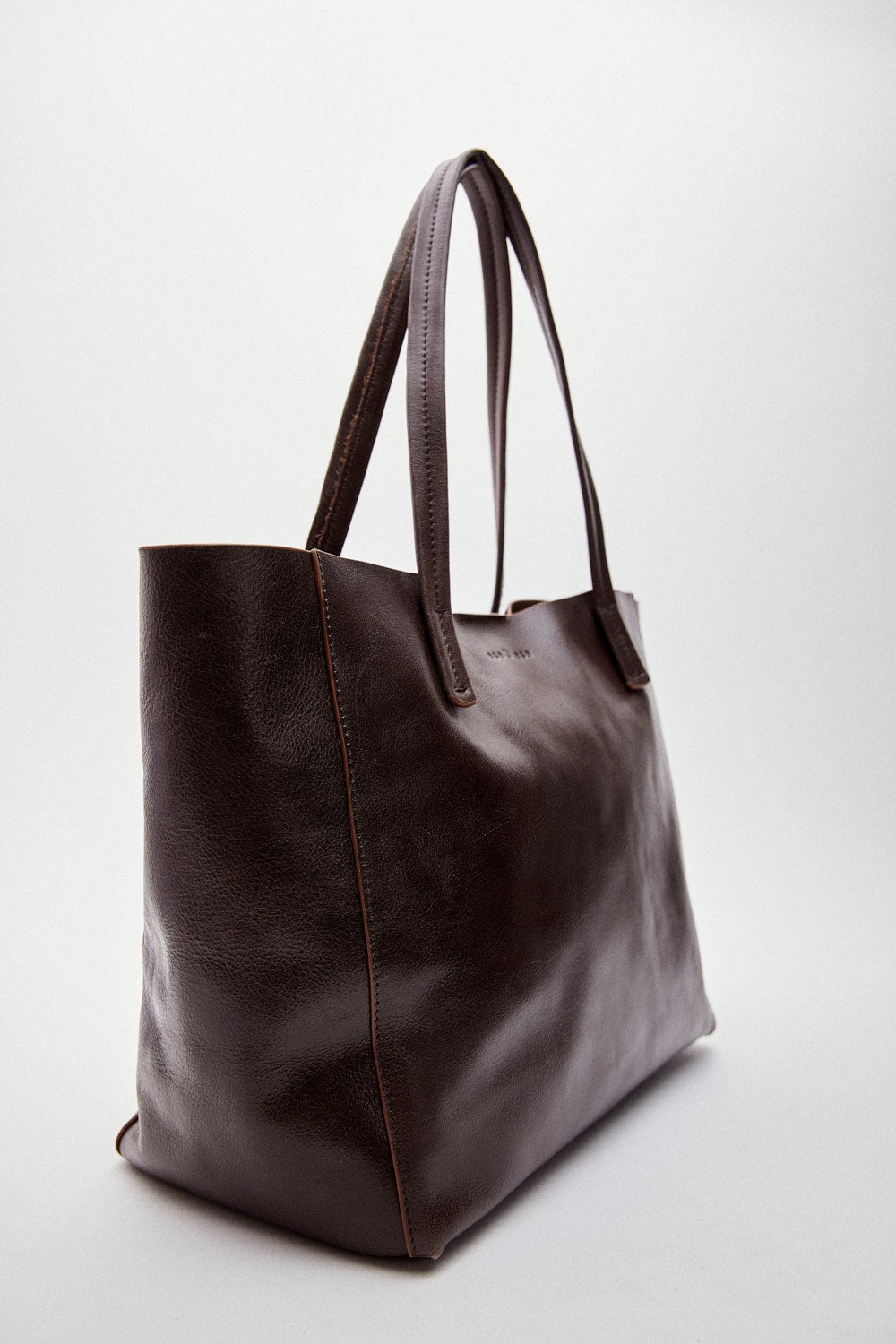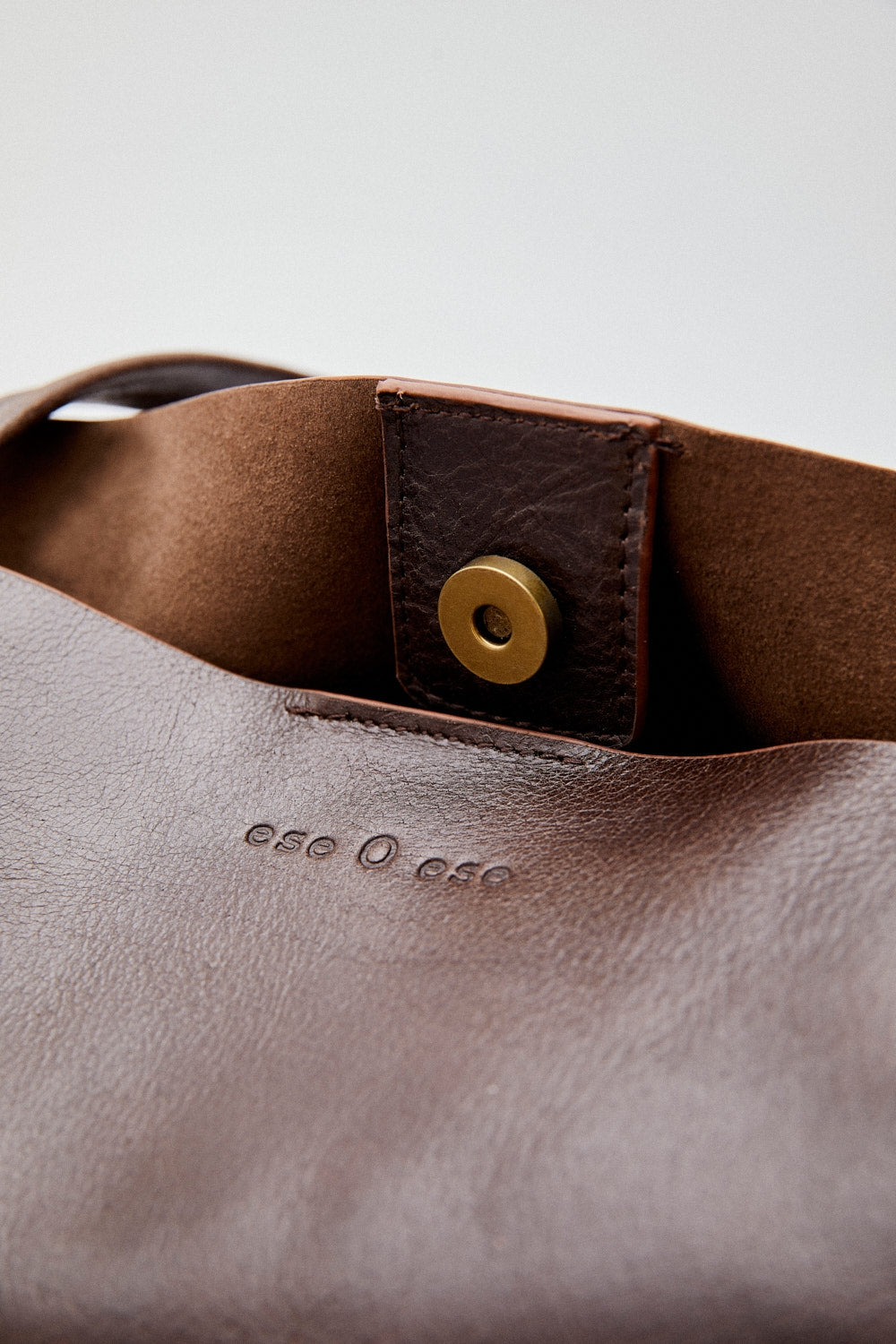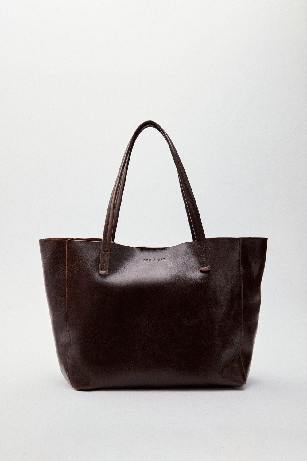 Bolso eseOese Shopper en color marrón chocolate de piel con cierre iman.