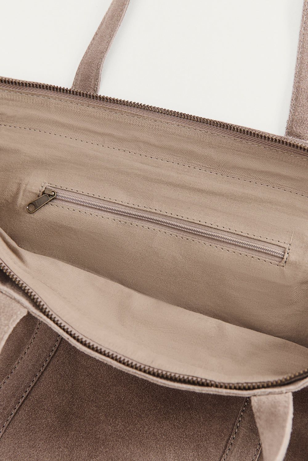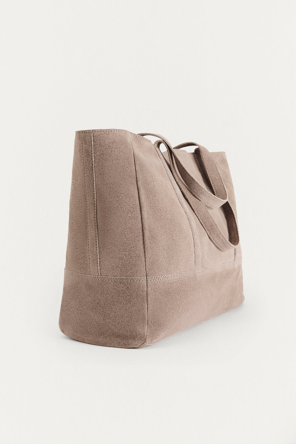 Bolso eseOese Shopper Suede en color taupe y piel en serraje.