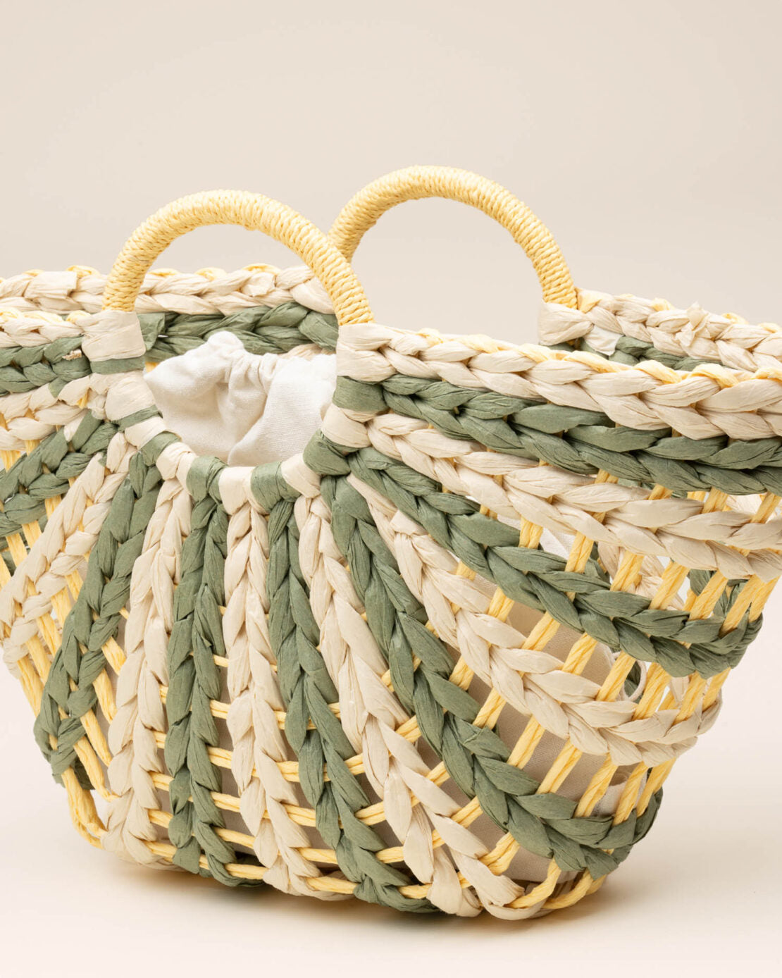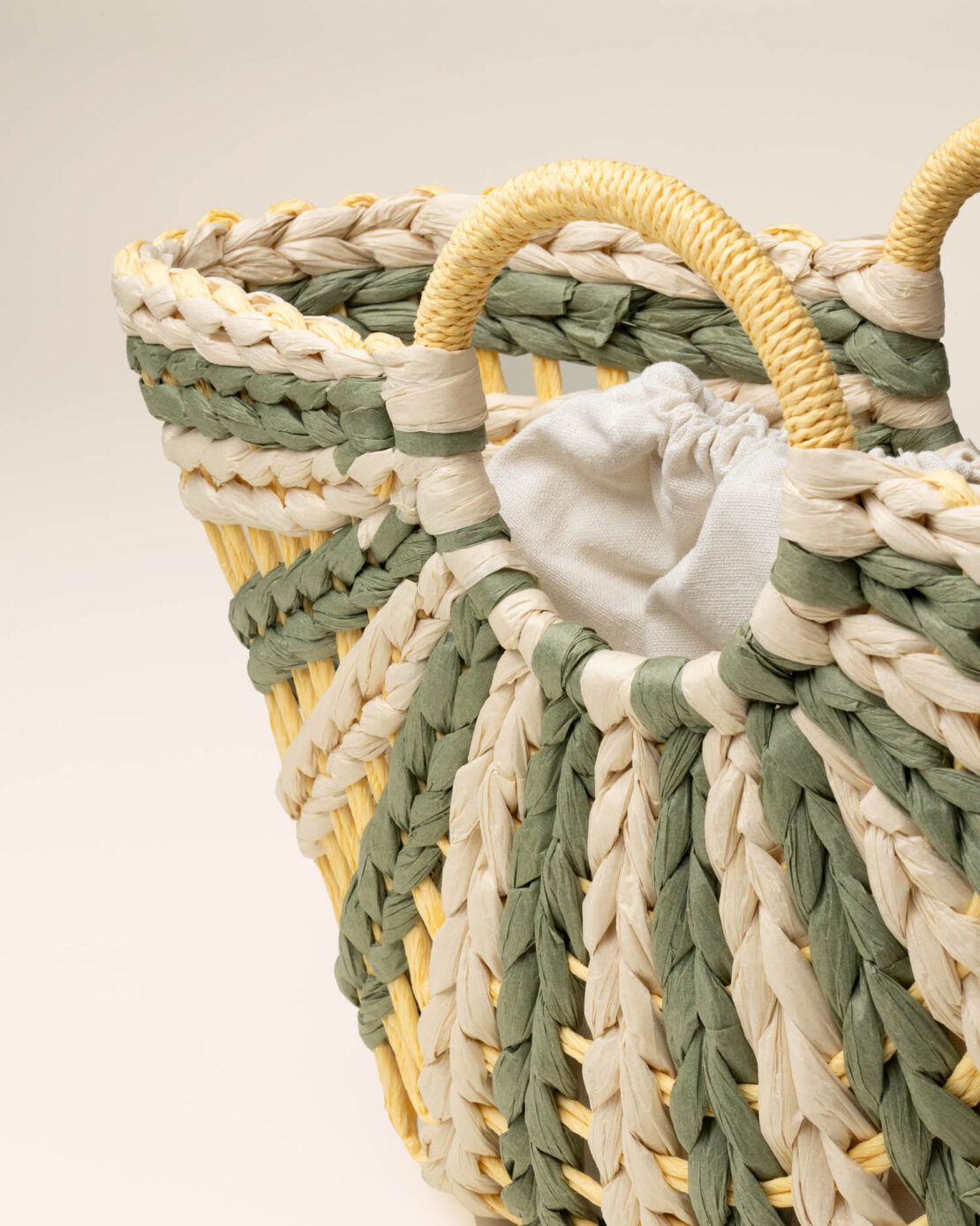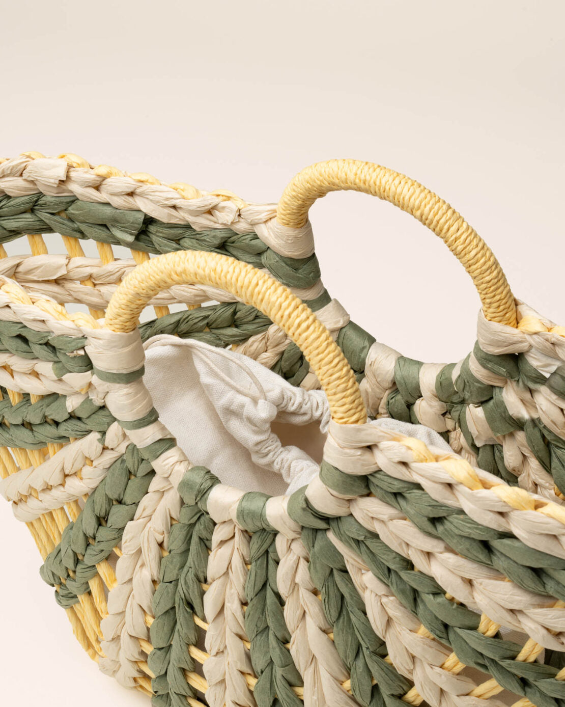 Bolso Gaimo Arnedo estilo capazo trenzado multicolor con bolsa ajustable en el interior.