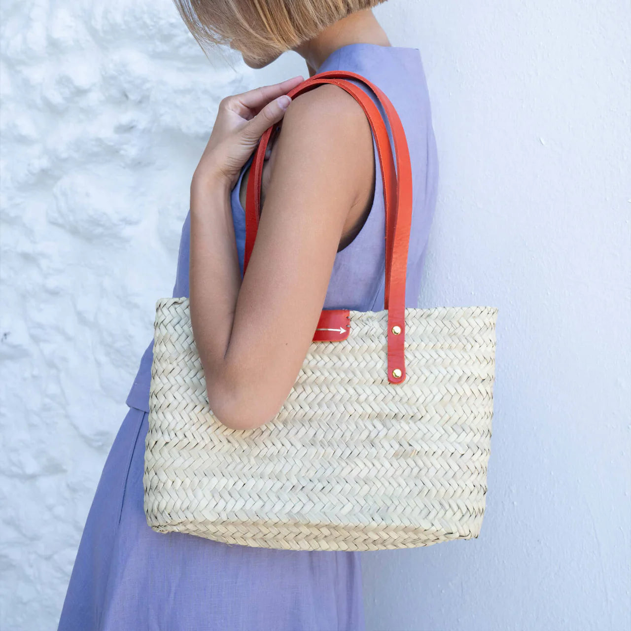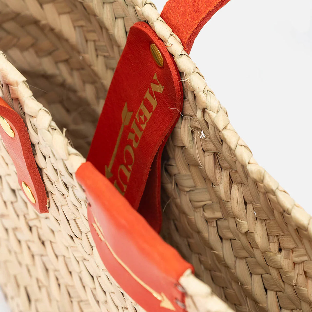 Bolso MERCULES Twiggy Basket estilo capazo con asas de piel en rojo.