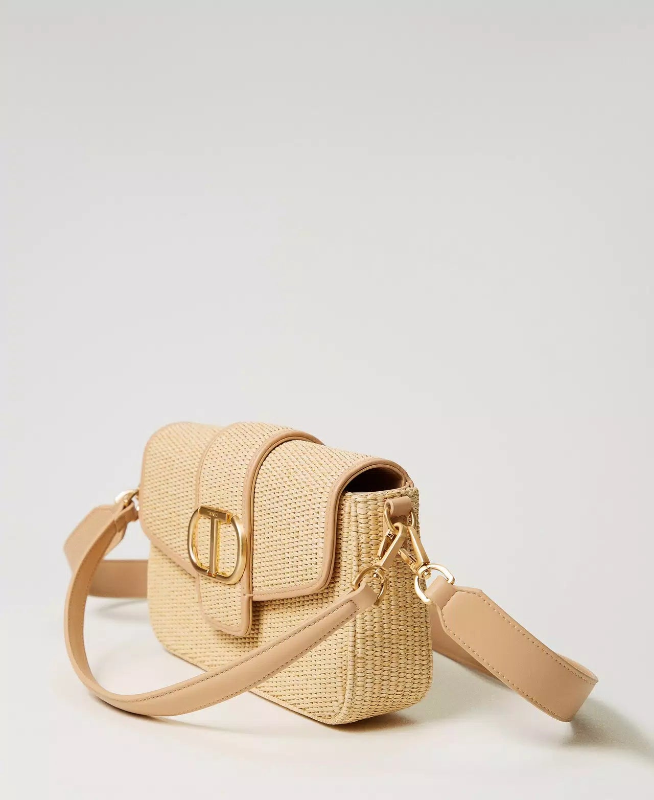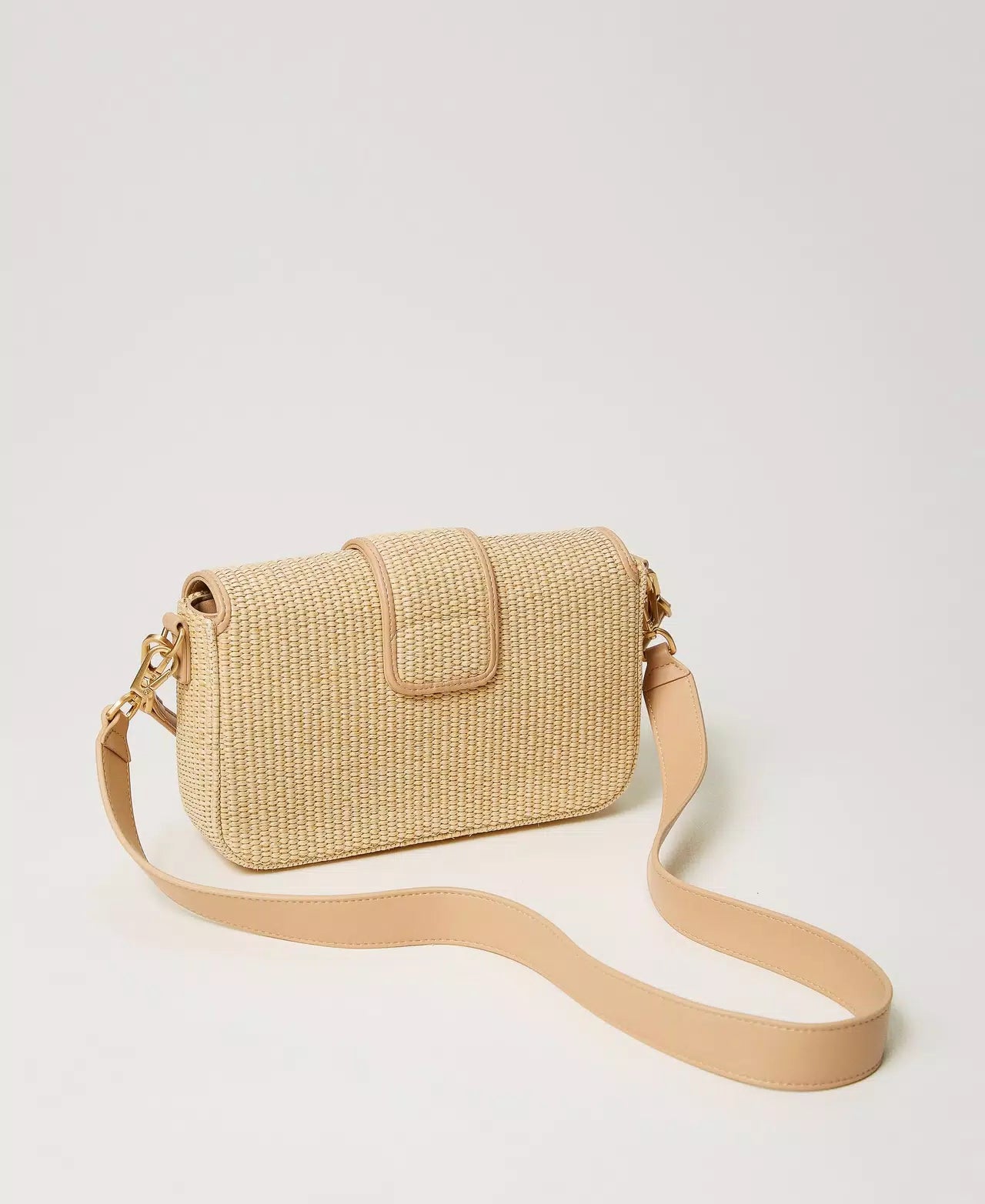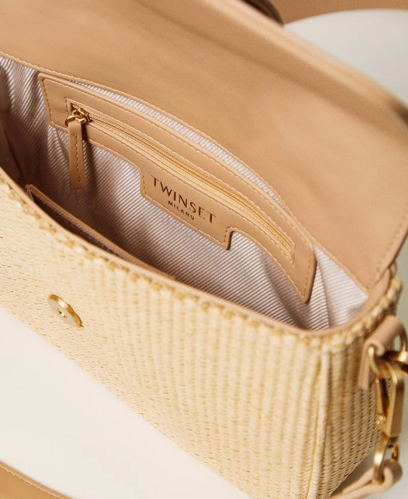 Bolso Twinset Amie color paja de rafia y acabado en piel.