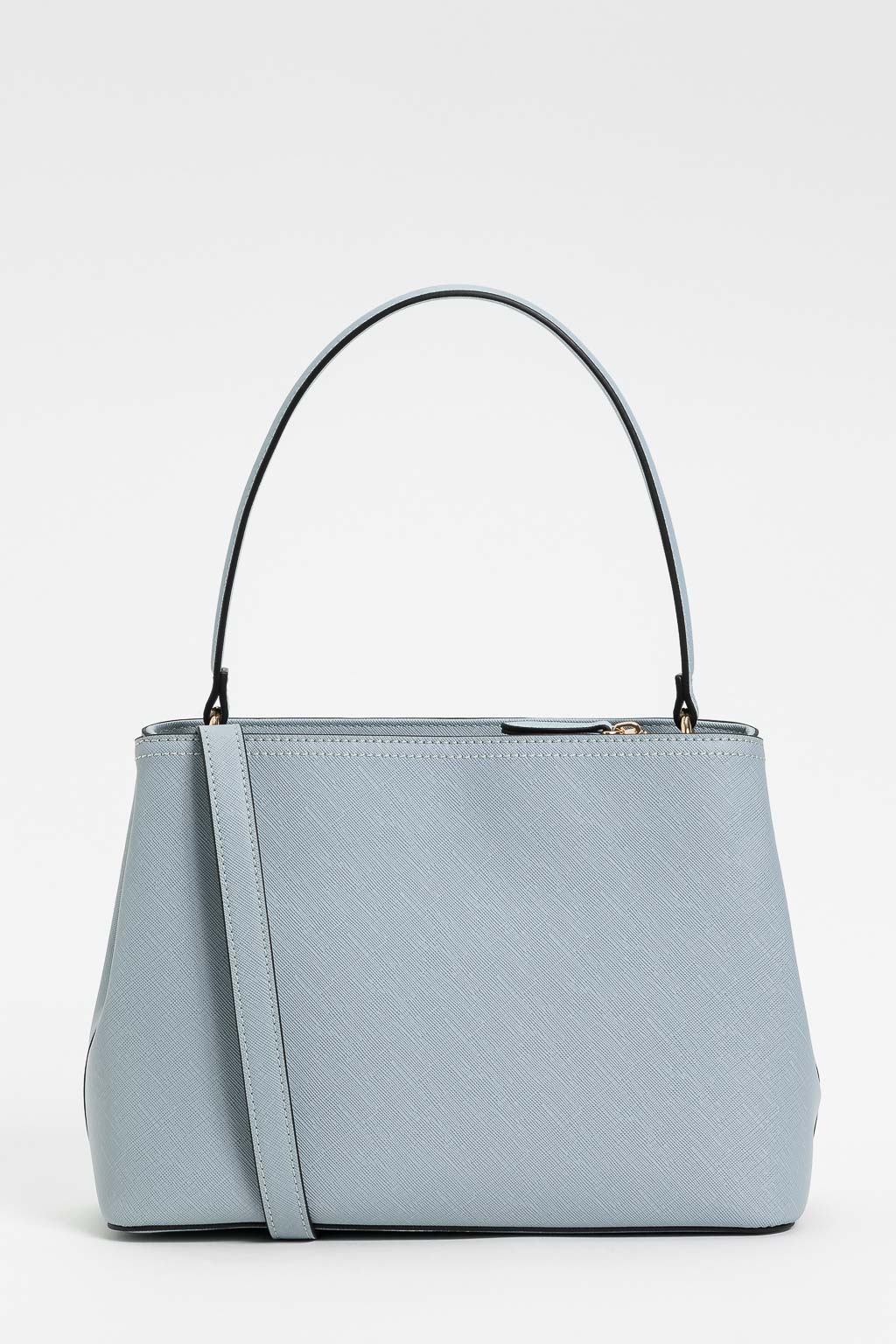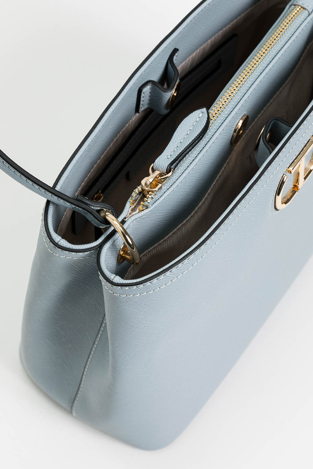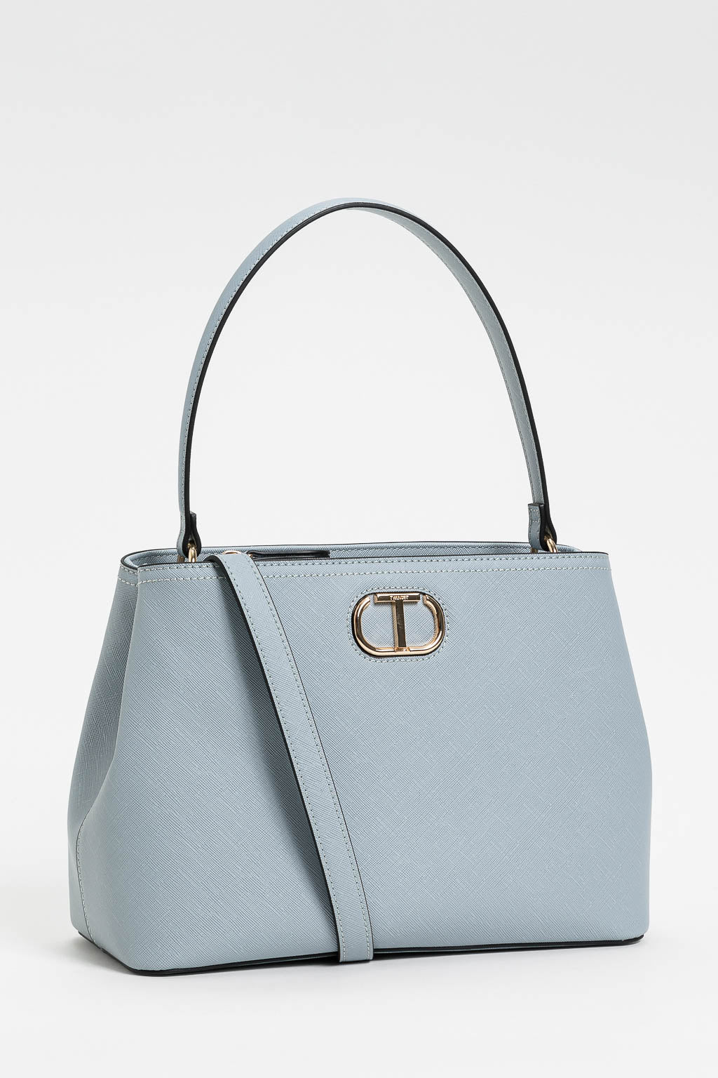 Bolso Twinset azul con efecto piel estampada y logotipo de la marca.