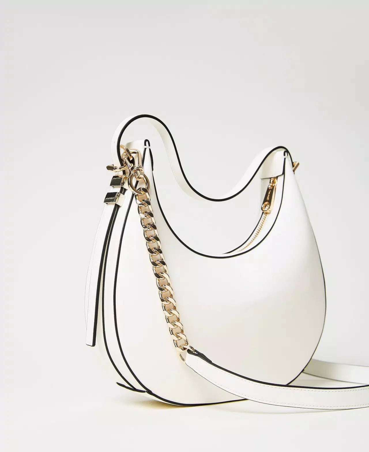 El bolso Twinset Hobo blanco es un complemento chic perfecto para cualquier look. Puedes usarlo con el asa de hombro o de bandolera. La cadena de la bandolera es extraible.