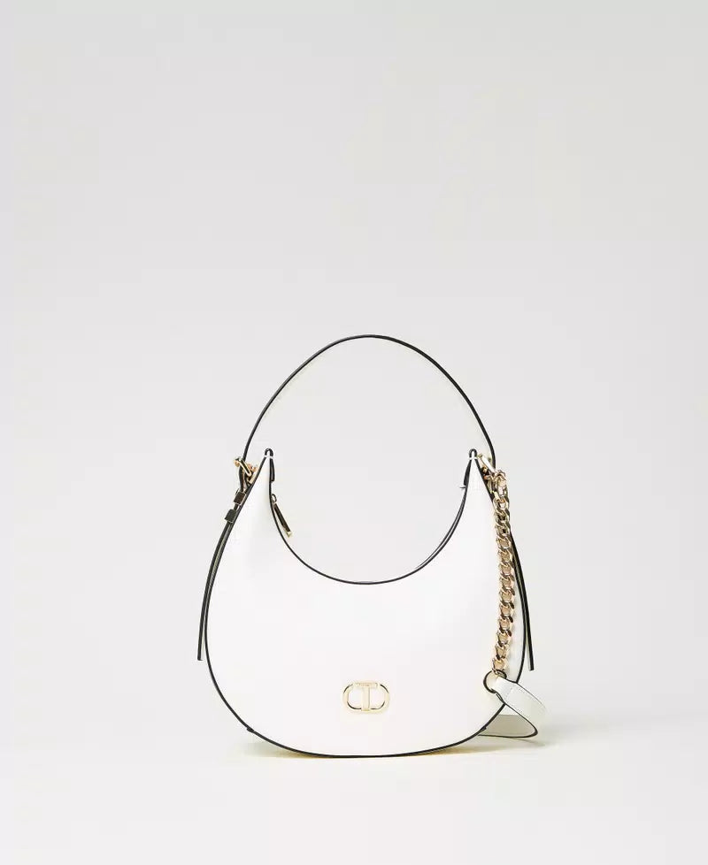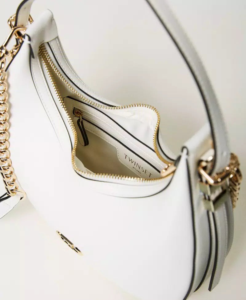 Bolso Twinset Hobo blanco con efecto piel lisa y logotipo de la marca.