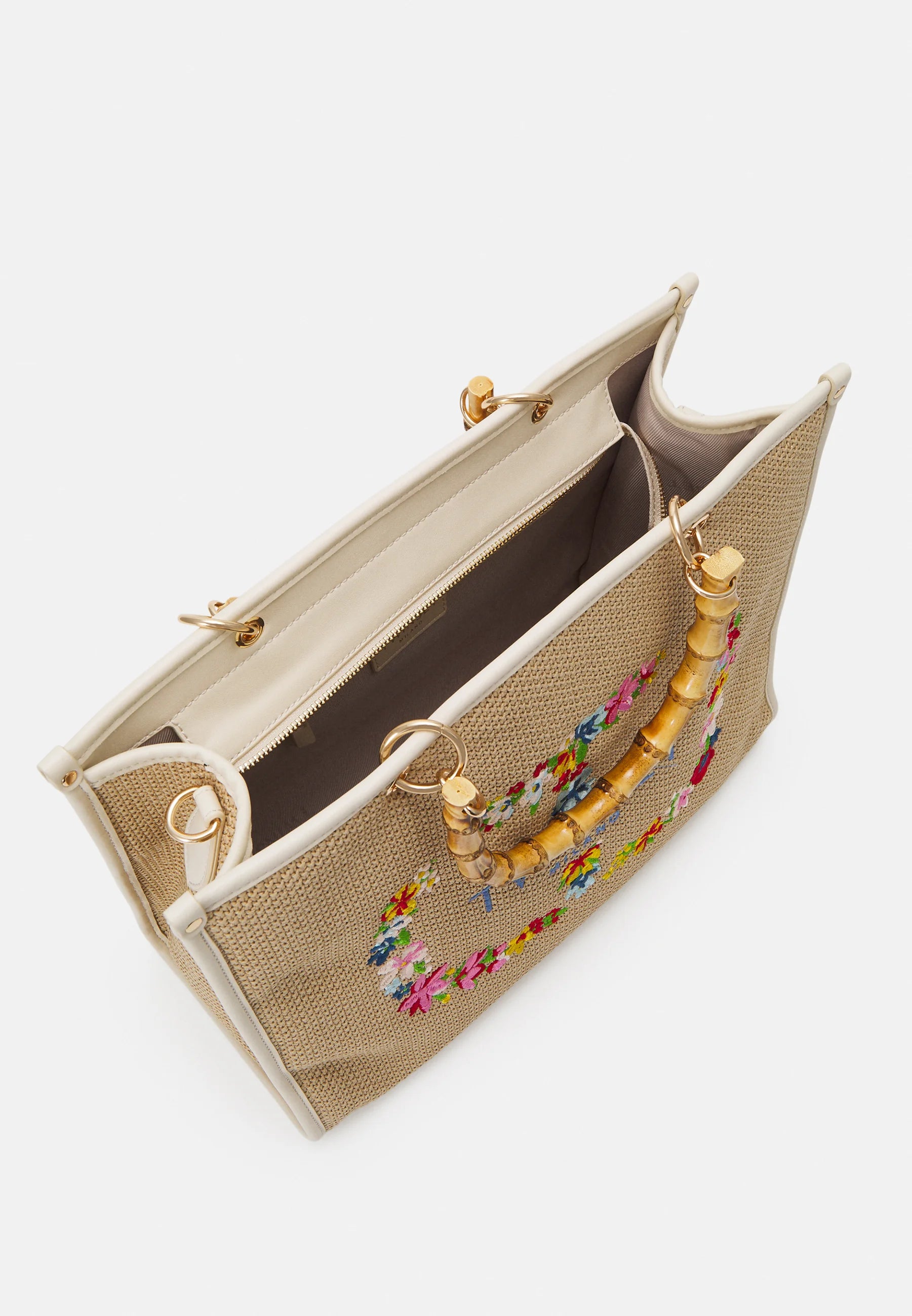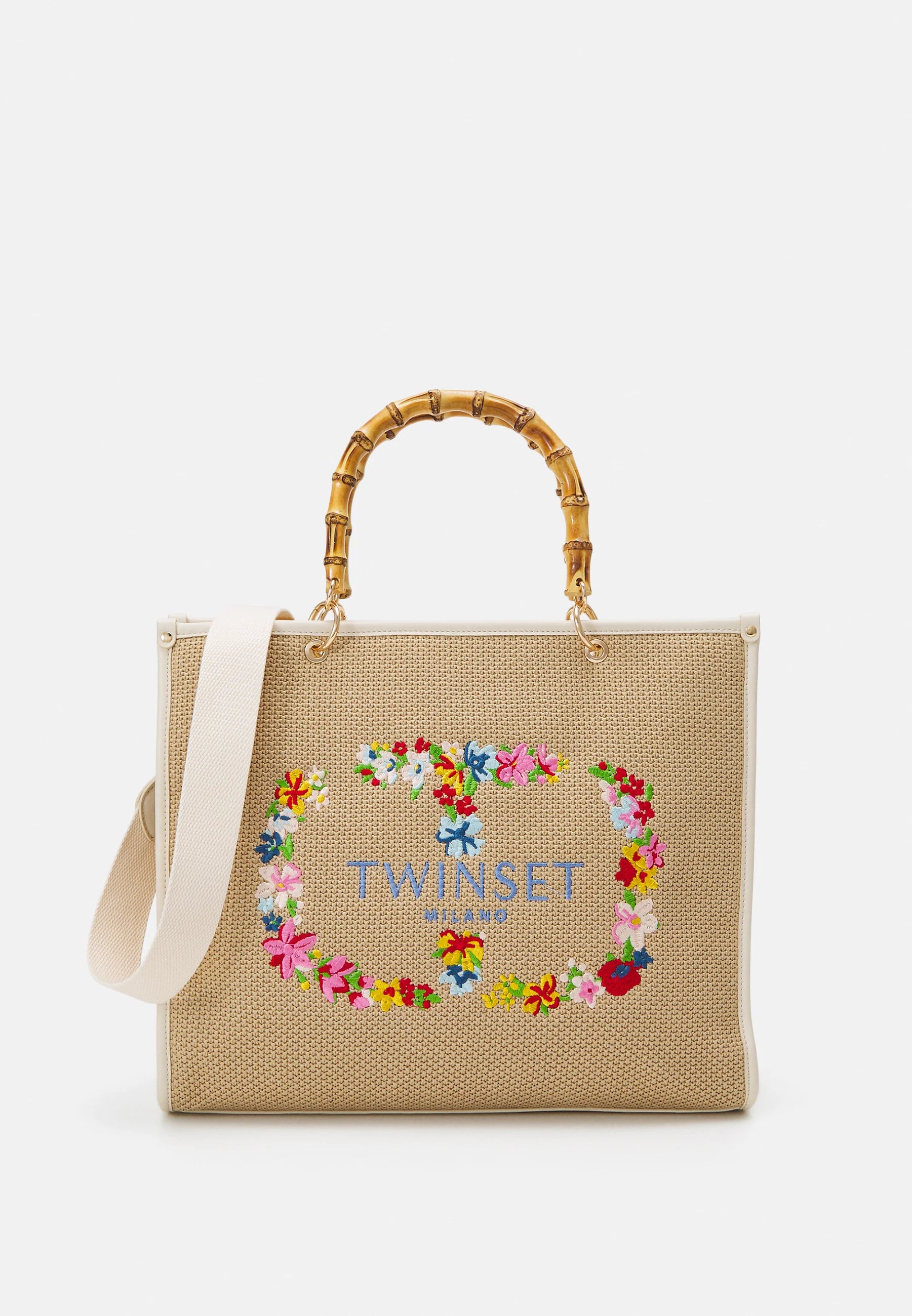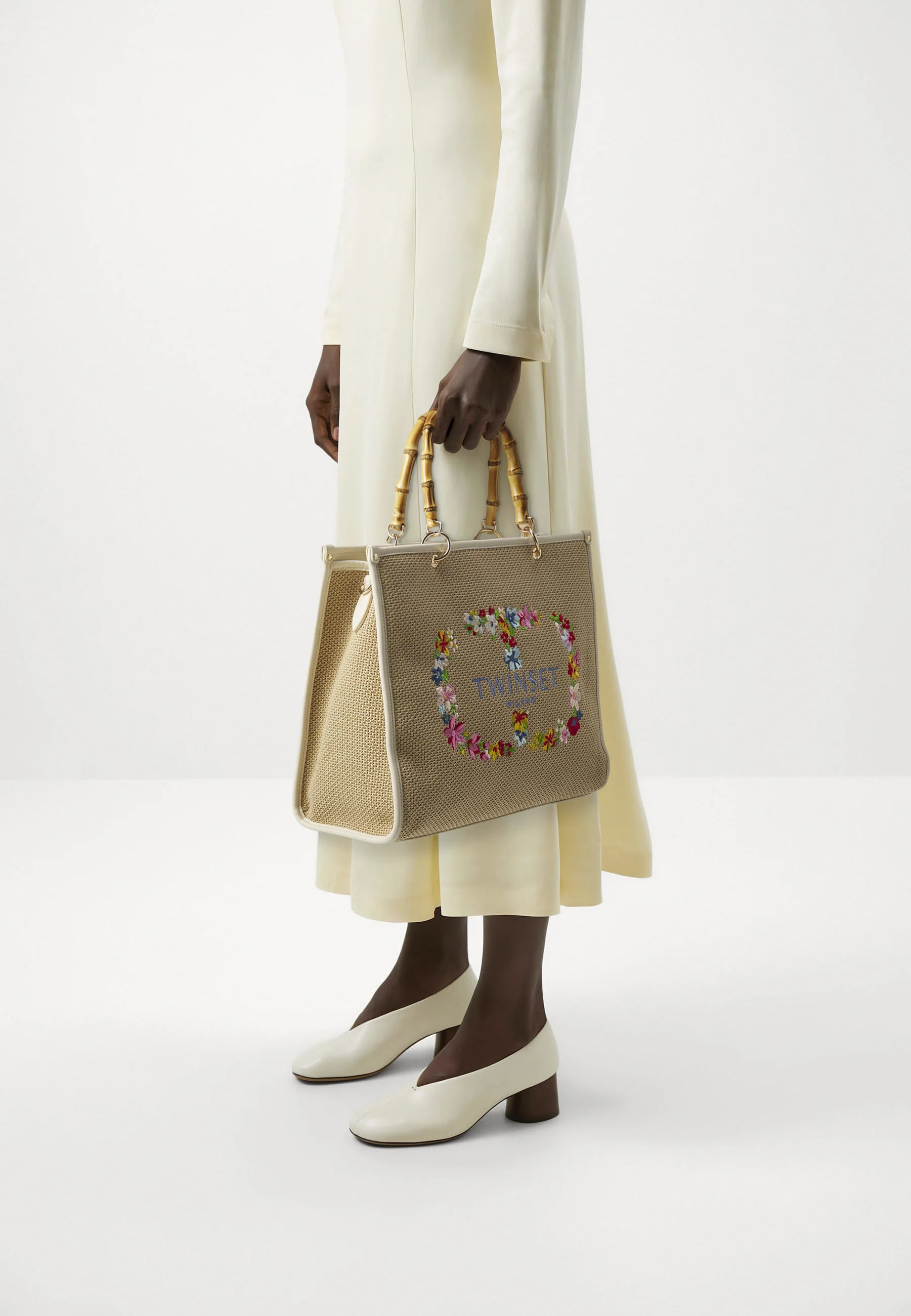 Bolso Twinset Shopping con bordado de flores y asa de bambu.