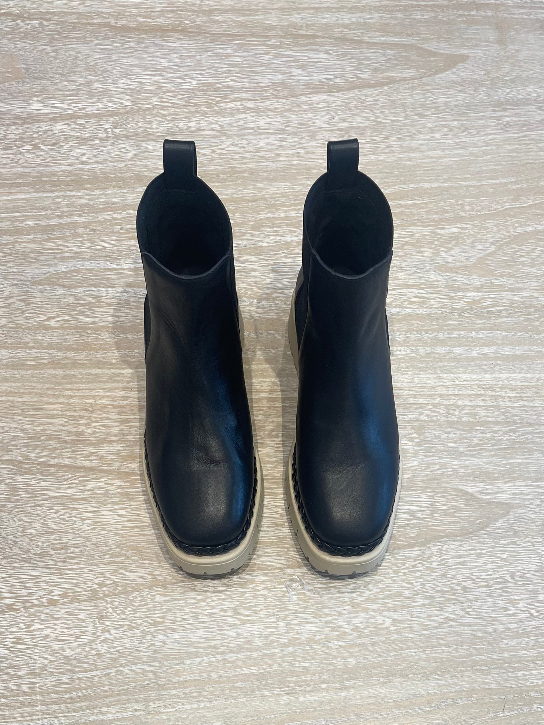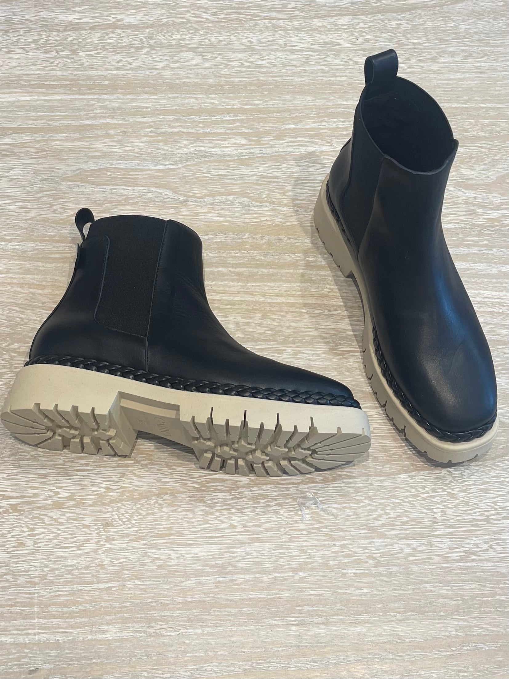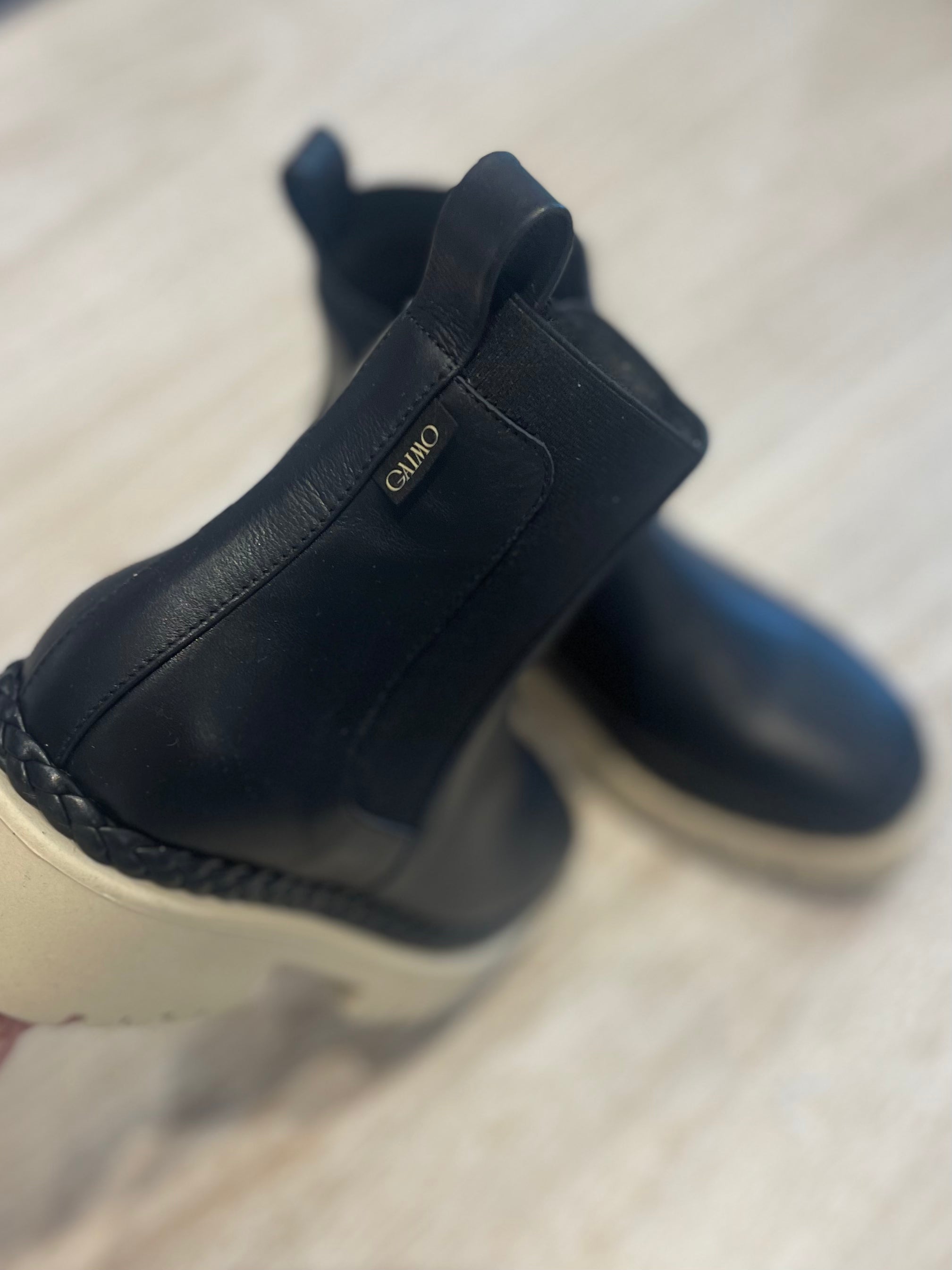 Botin Gaimo Catrina negro tipo Chelsea en piel soft con detalle trenzado y suela track.