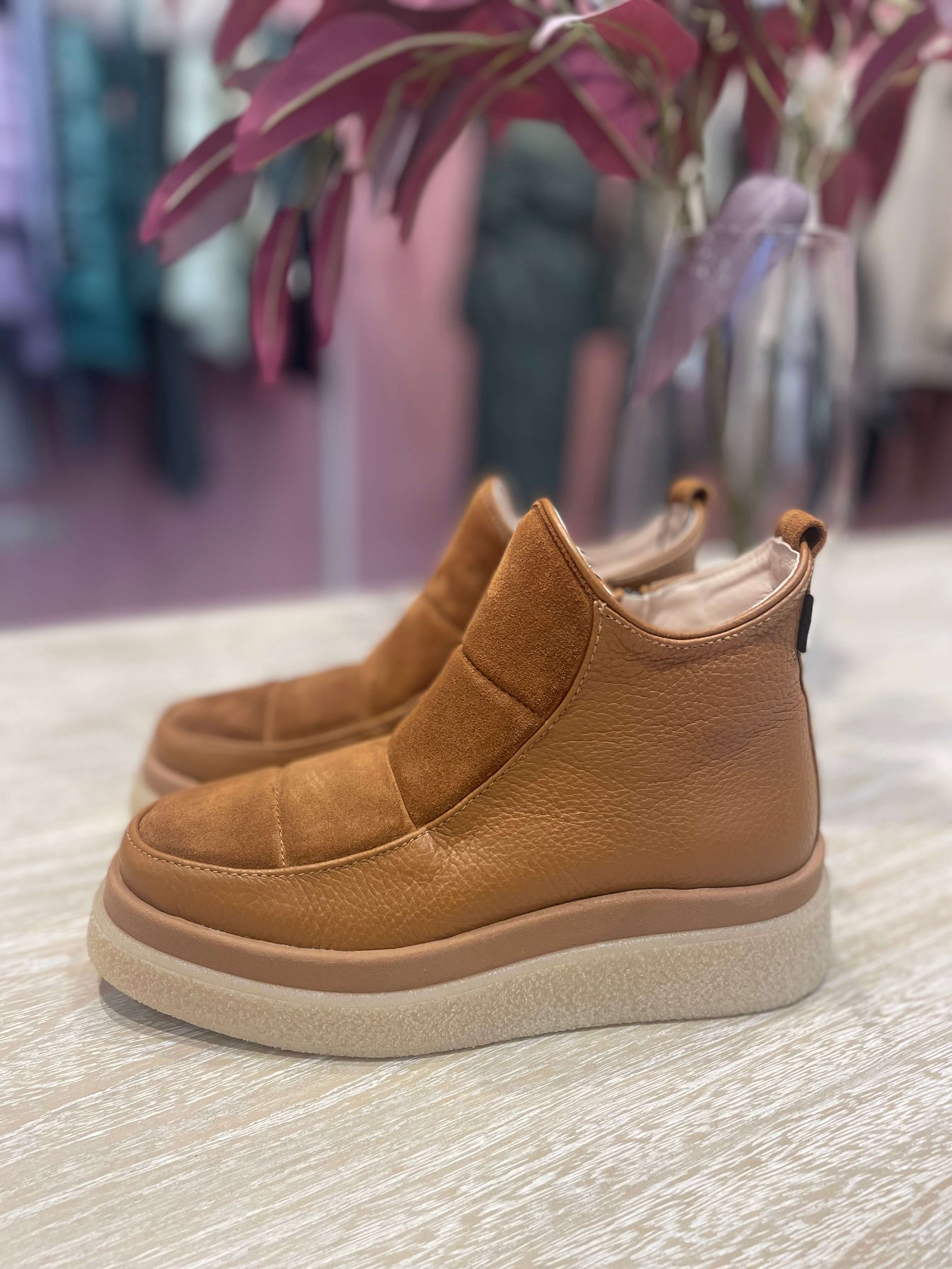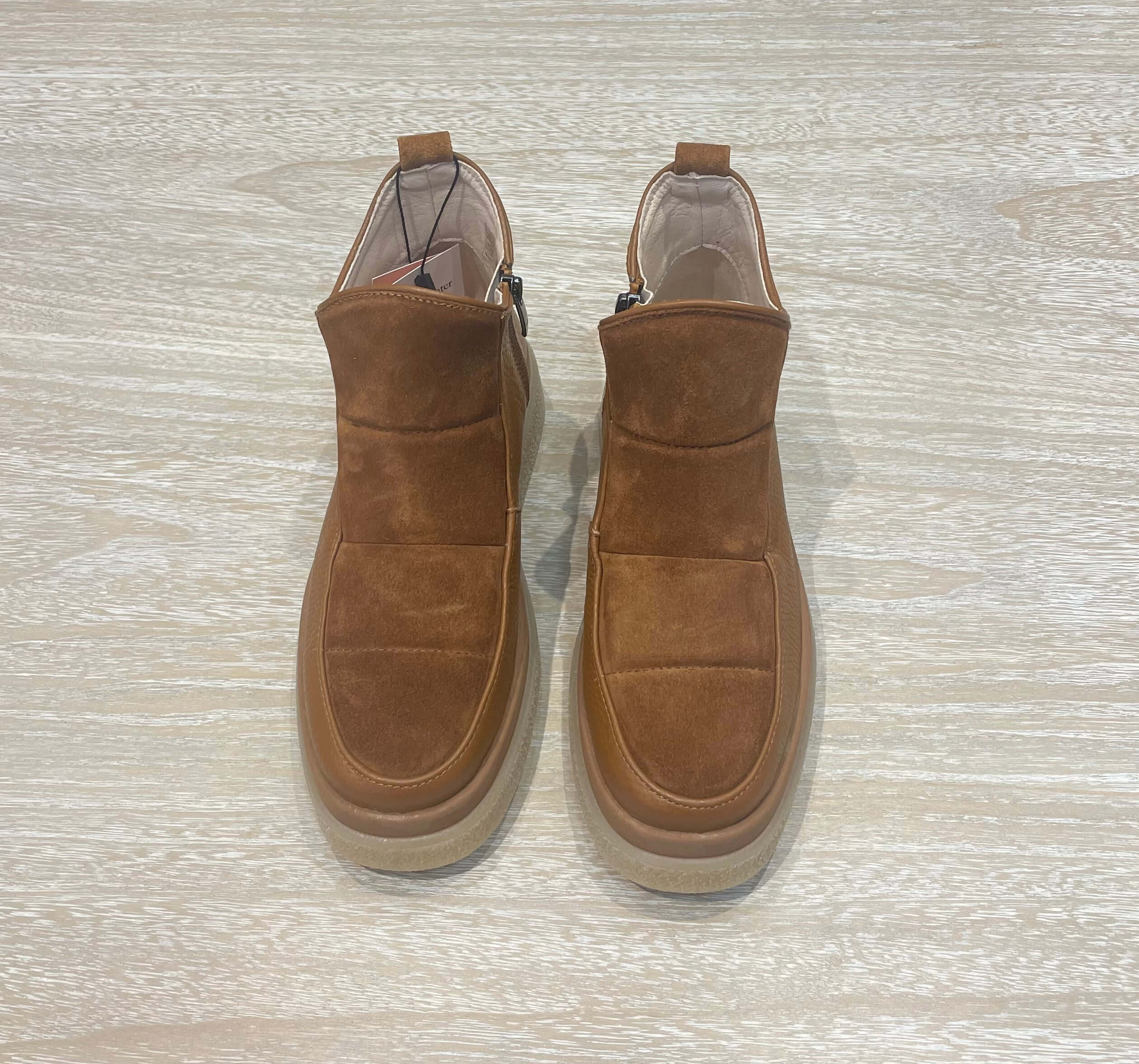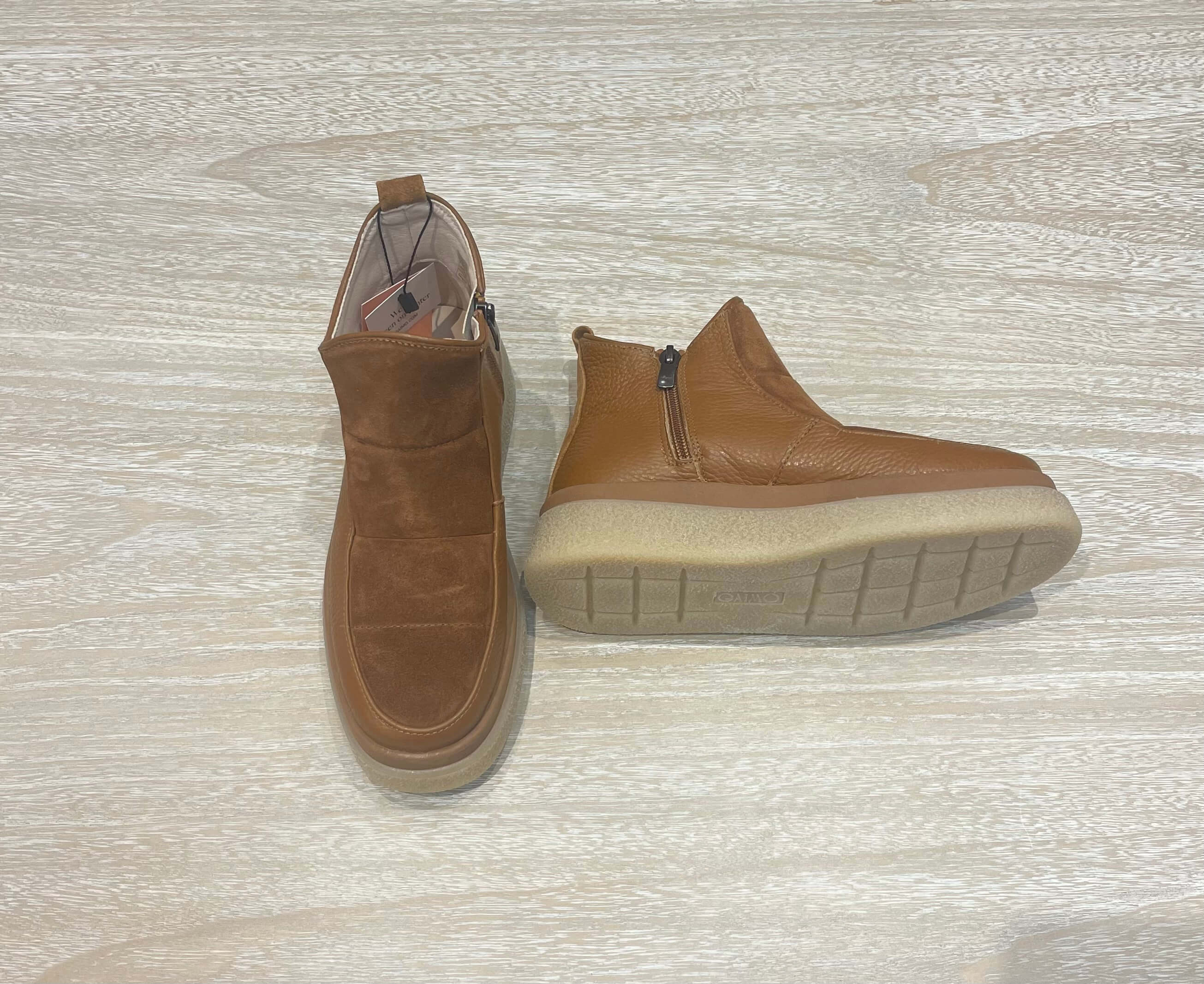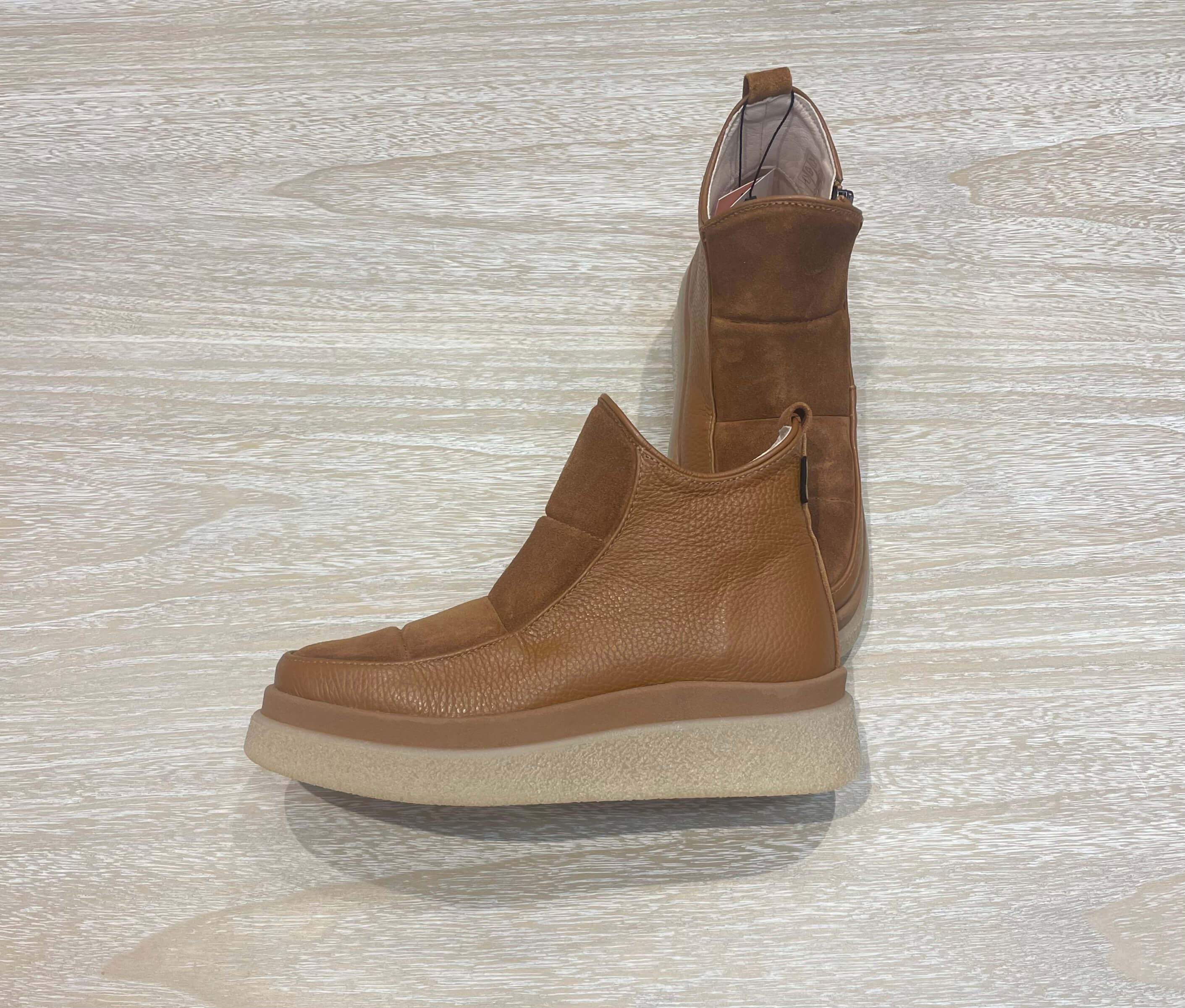 Botín Gaimo Naos de piel marrón y piel serraje en la parte delantera.