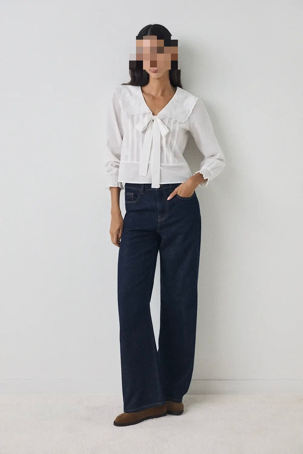 Camisa eseOese Agatha con pliegues en el delantero y cuello con detalle de lazada.