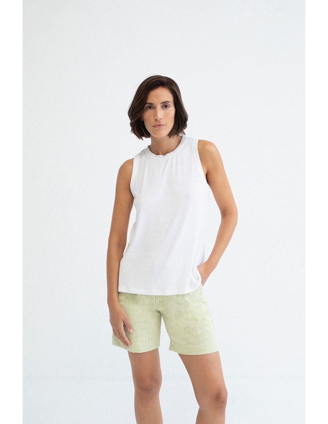 Camiseta Mus&Bombon Alm blanca sin mangas y microcanalé.