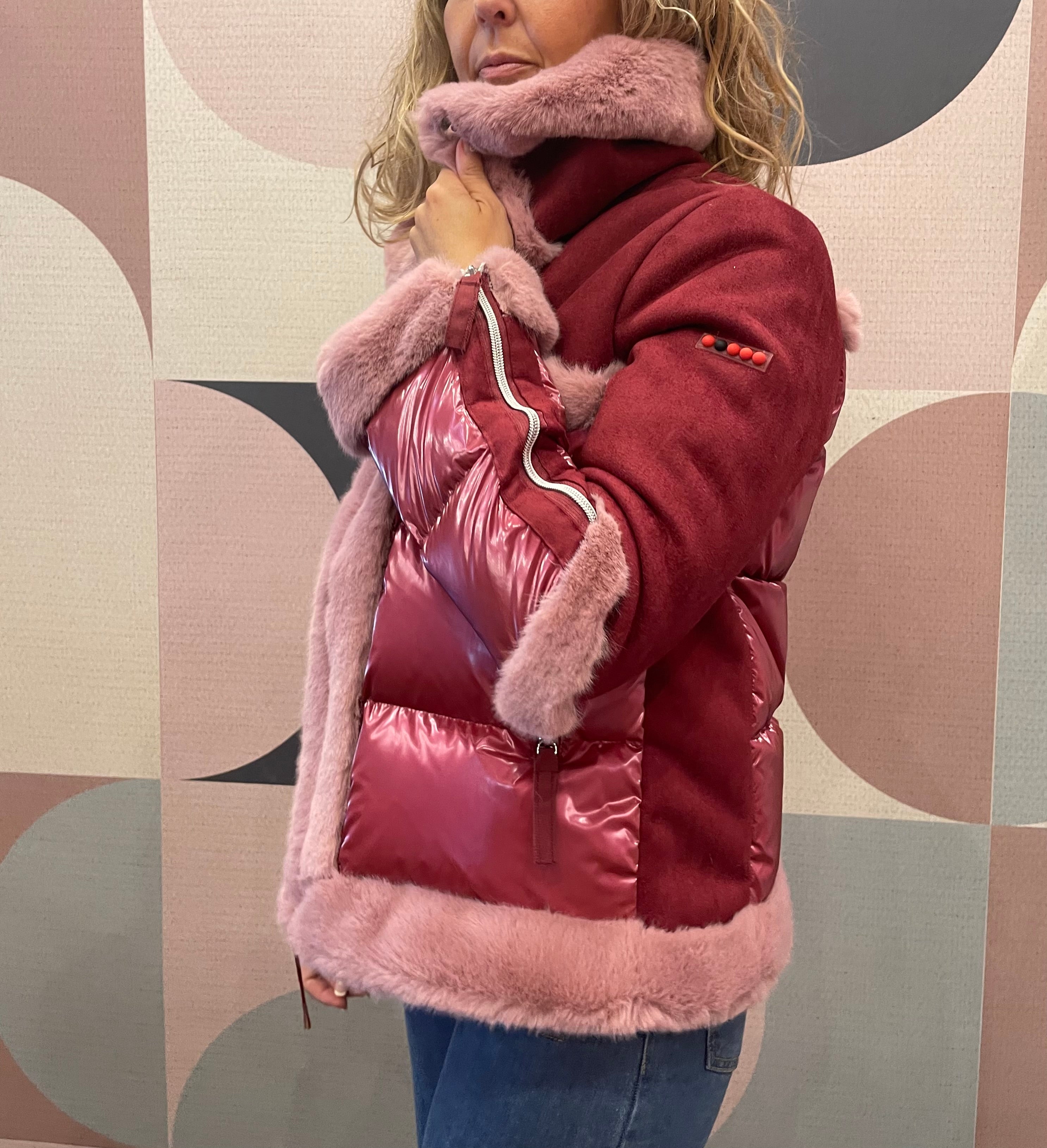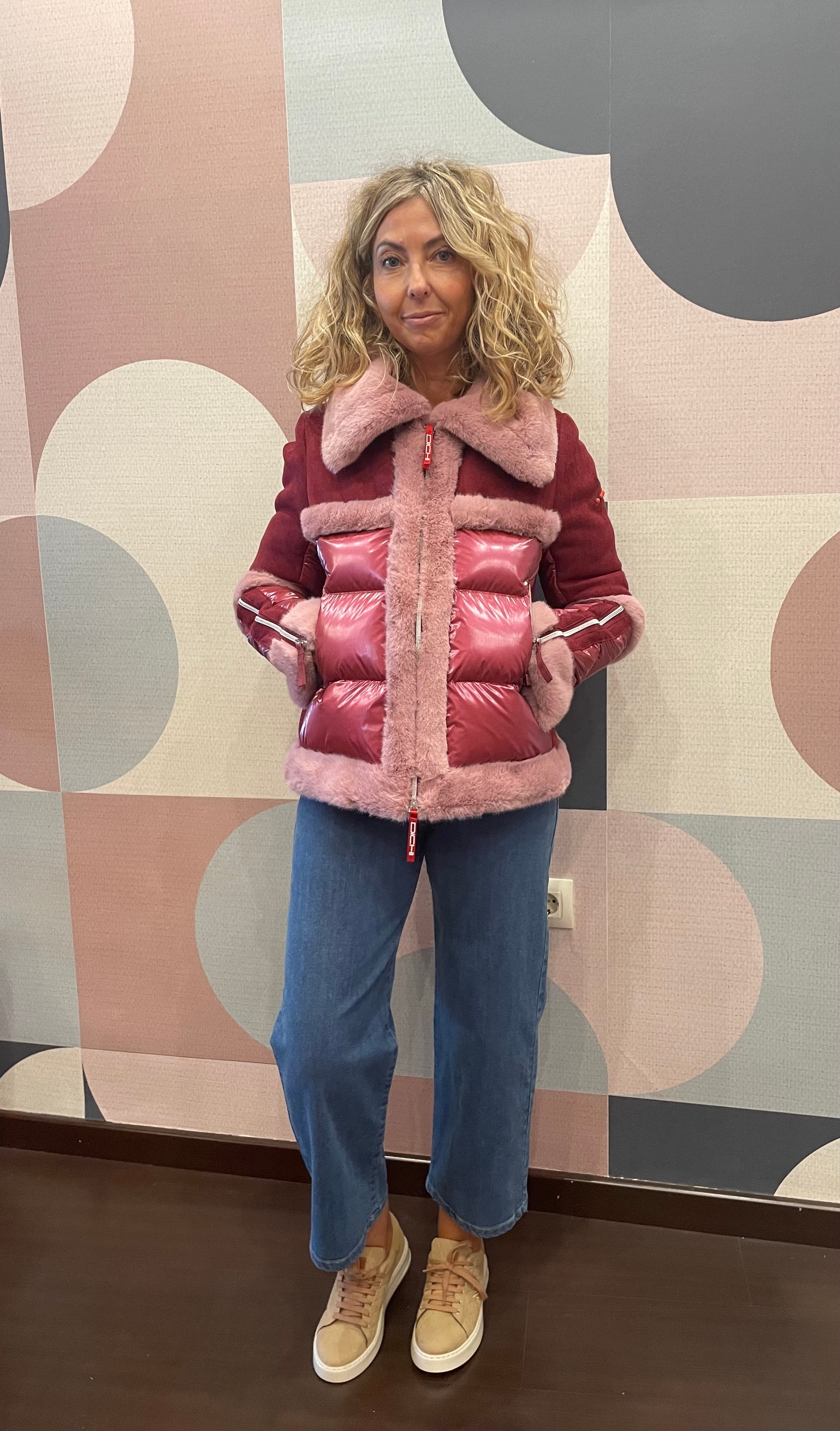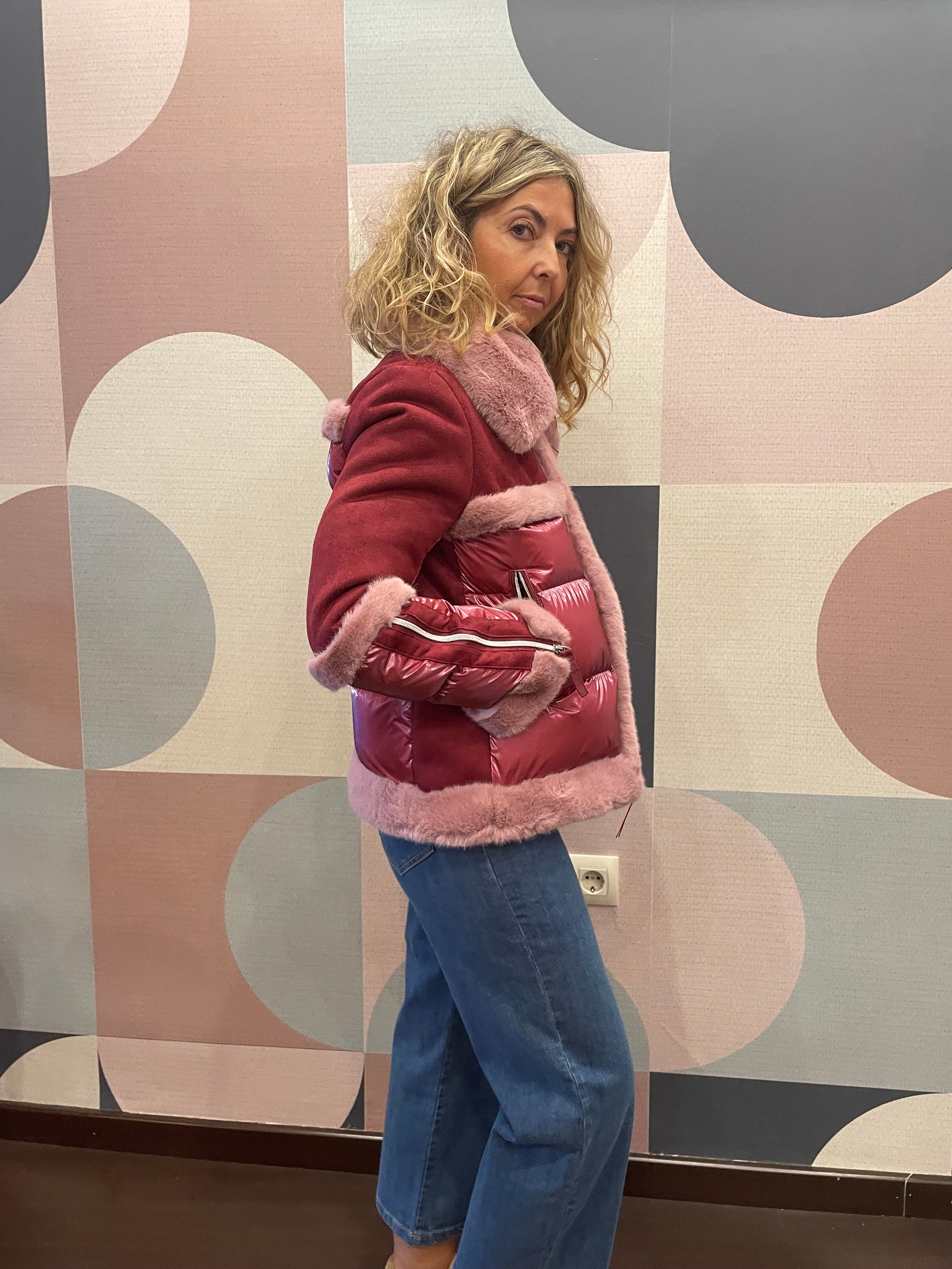 La cazadora Dichi Cyrene es un abrigo elegante y cálido, con relleno del 90% plumón de pato y borreguillo.