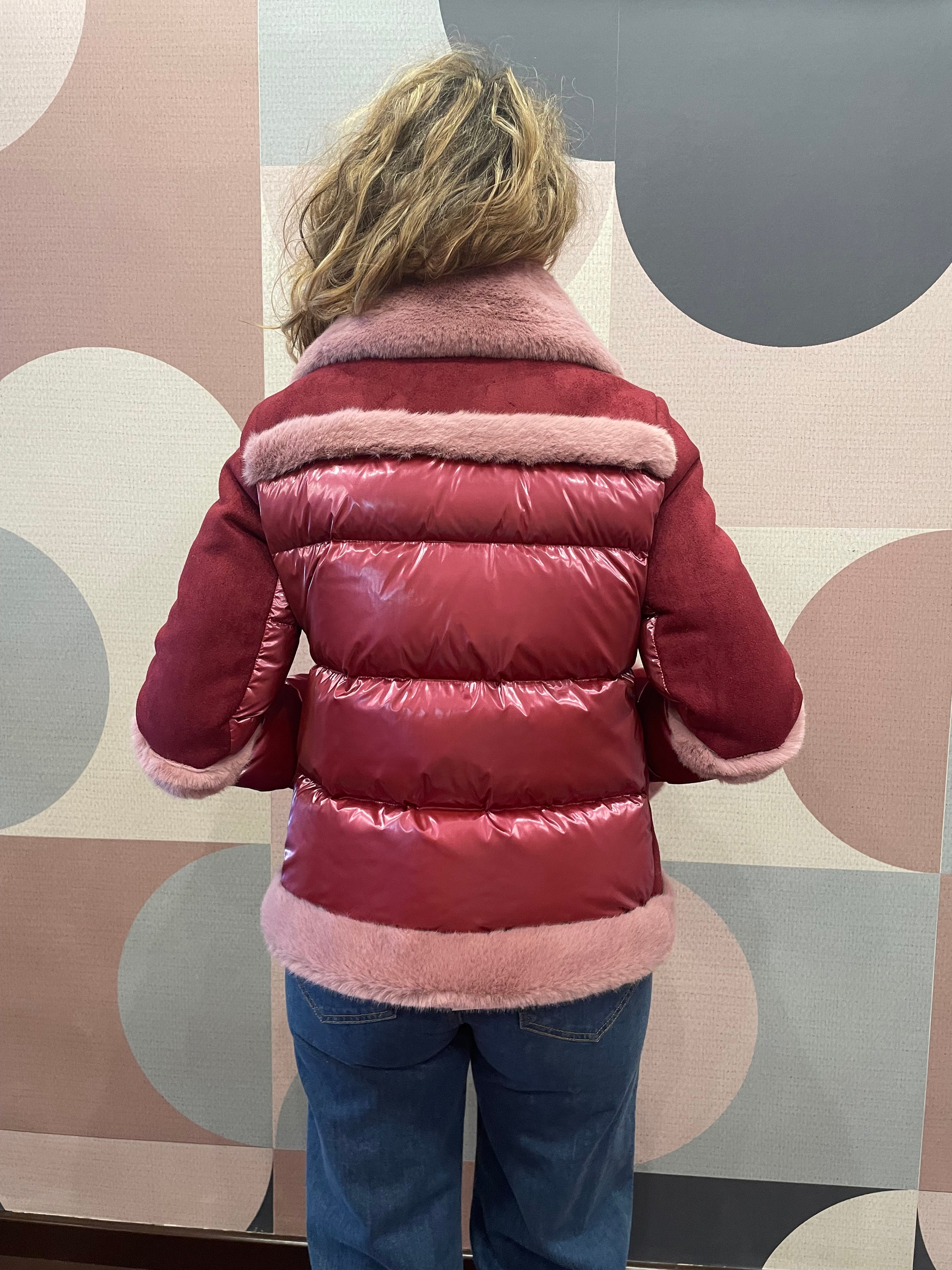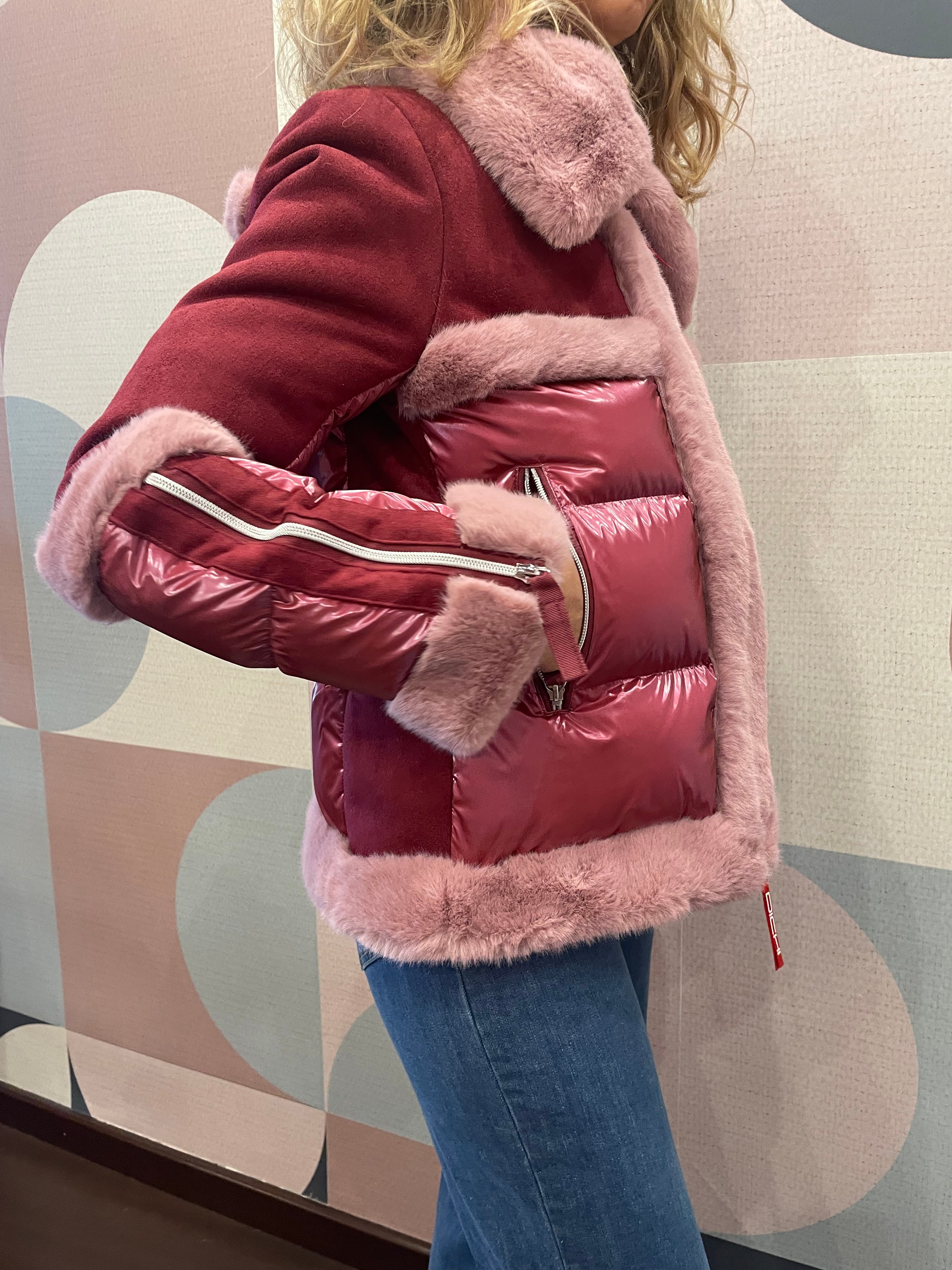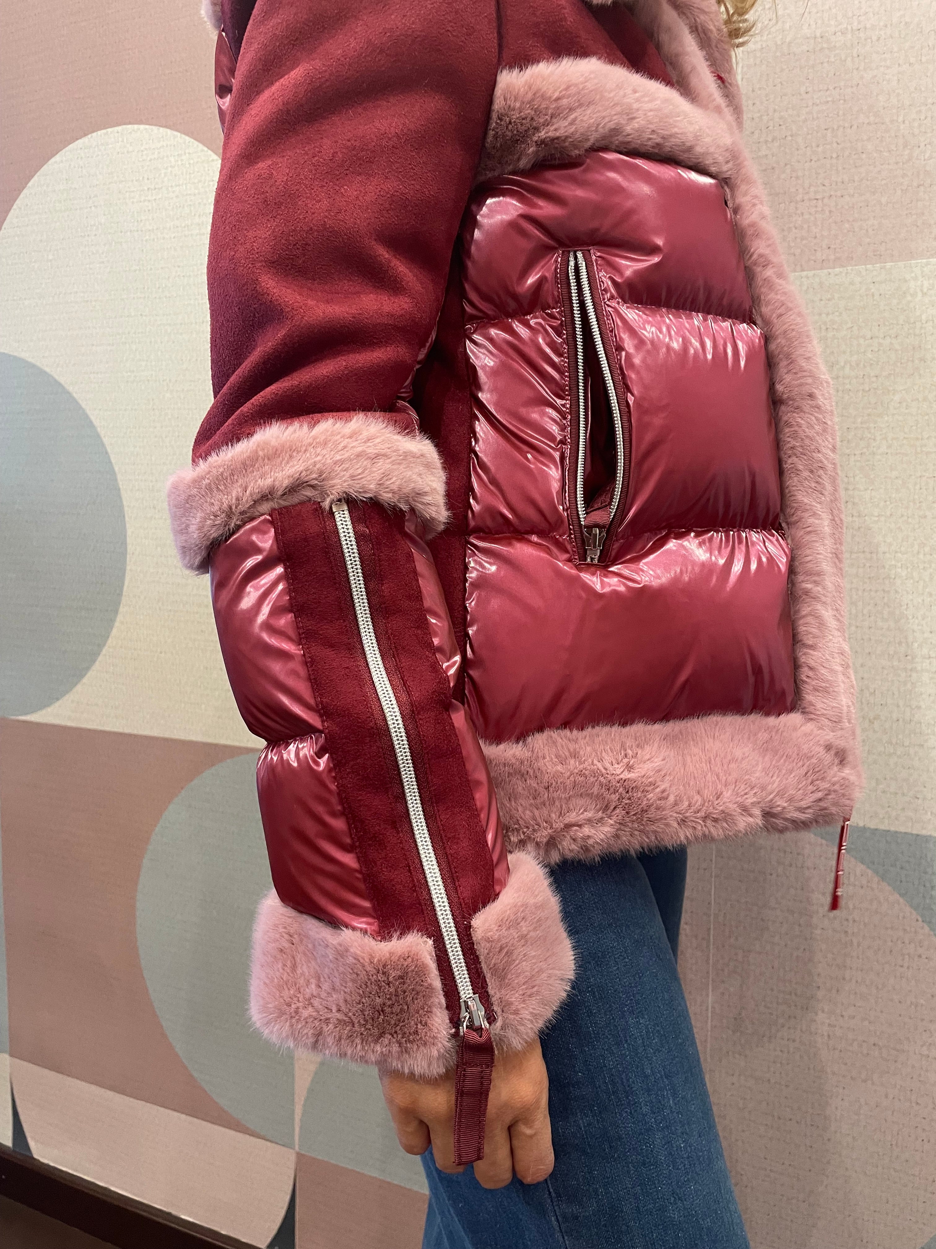 La cazadora Dichi Cyrene es un abrigo elegante y cálido, con relleno del 90% plumón de pato y borreguillo.