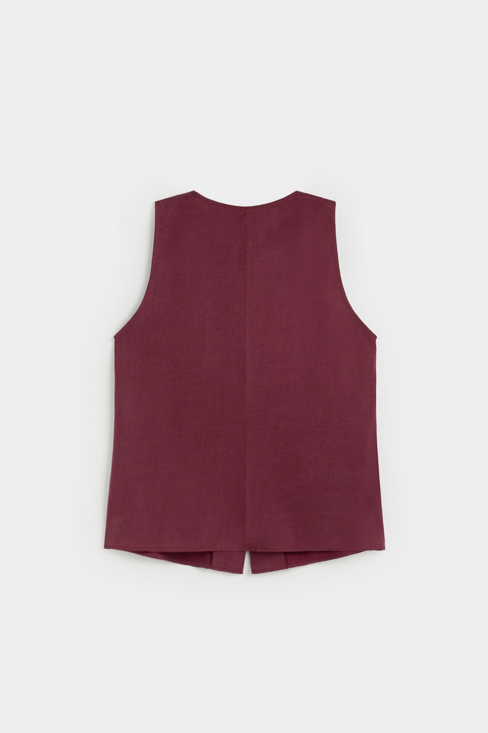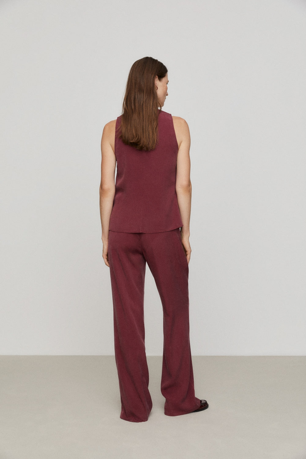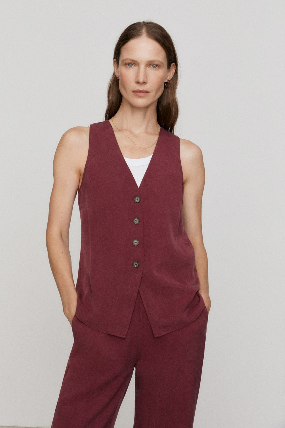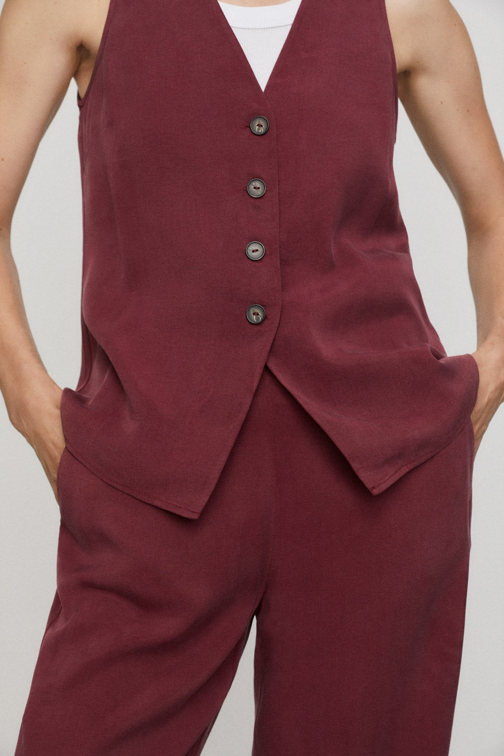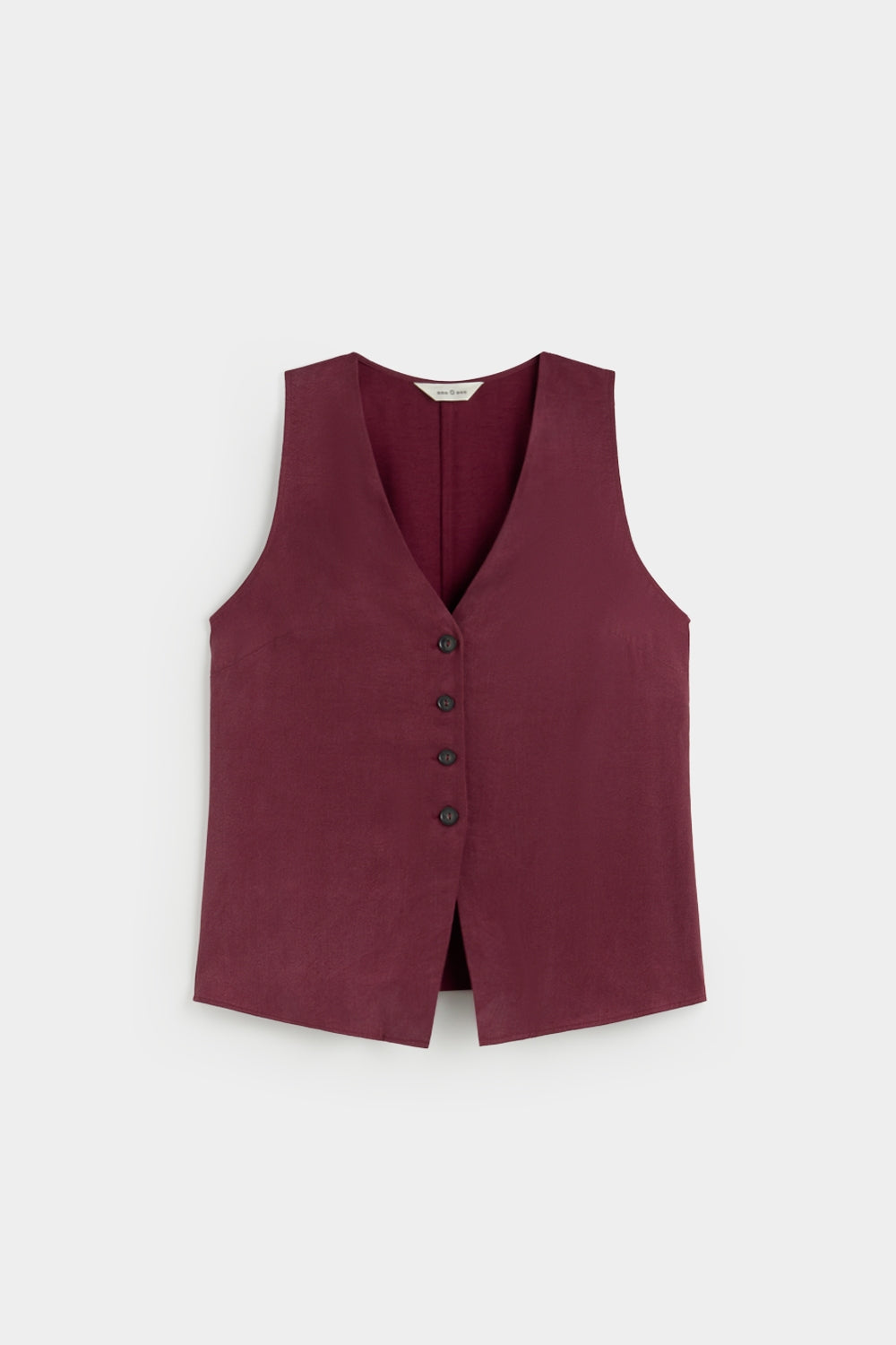 Chaleco eseOese Cannes en color burdeos largo y fluido.