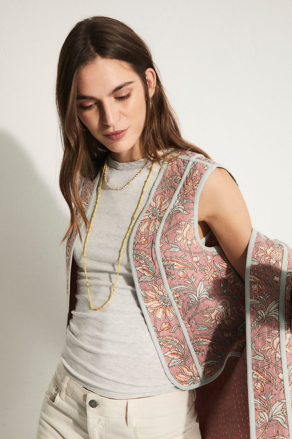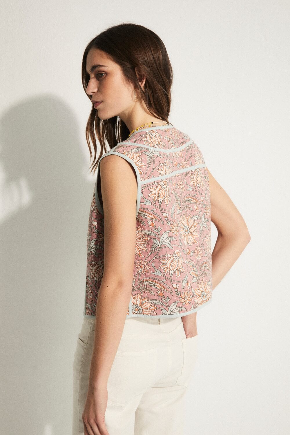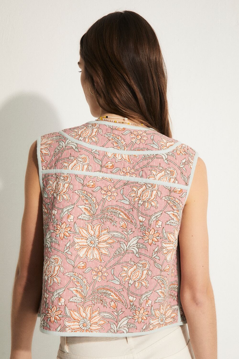 Chaleco eseOese Hari Rose de algodón acolchado, diseño estampado.