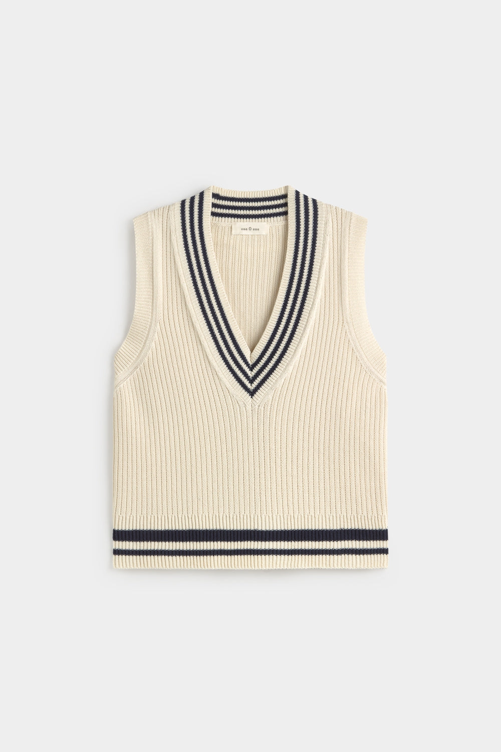 Chaleco eseOese Match de punto con escote a pico en color crudo.
