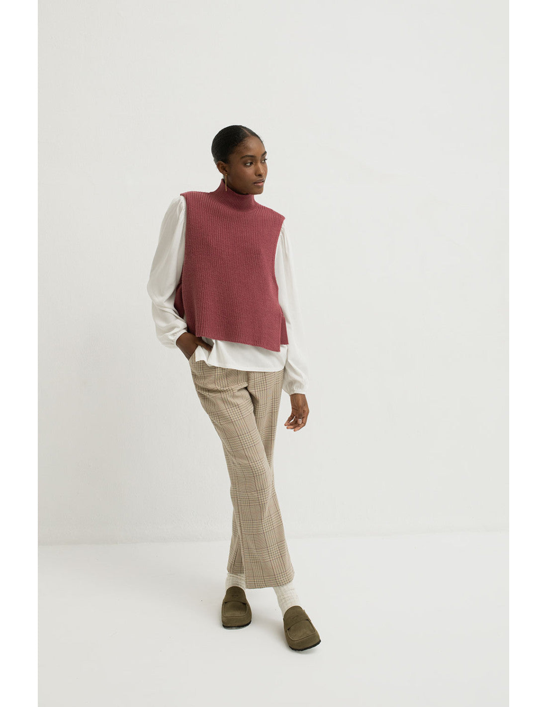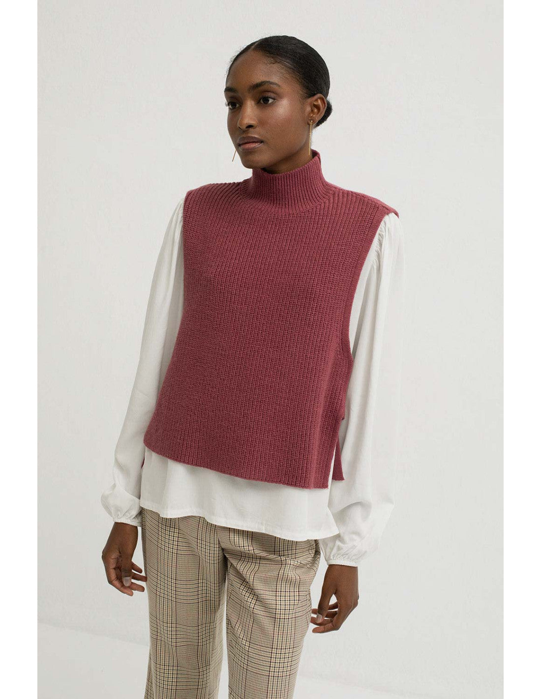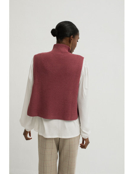 Chaleco Mus&Bombon Vade en color grosella, con laterales abiertos con lazos.