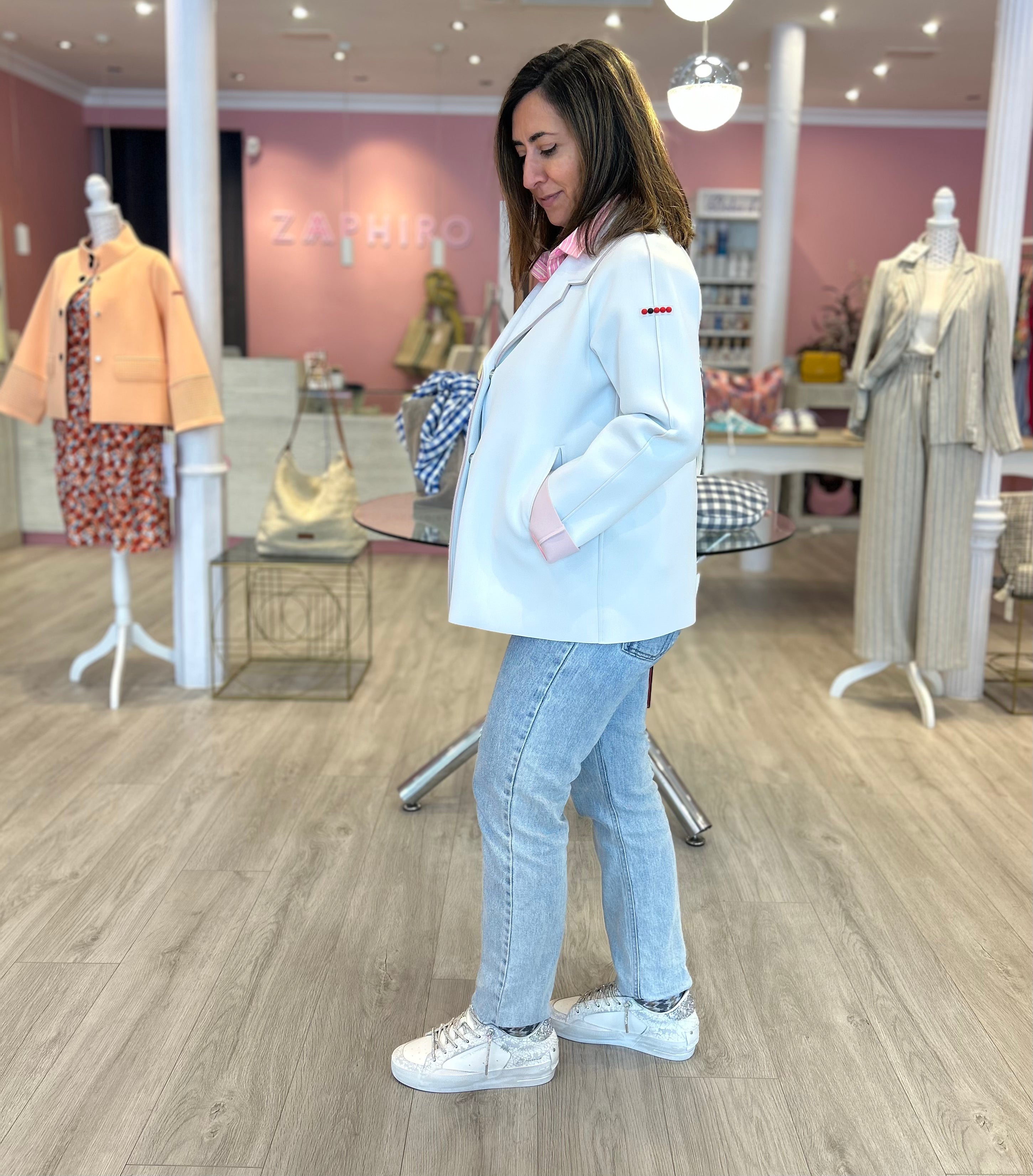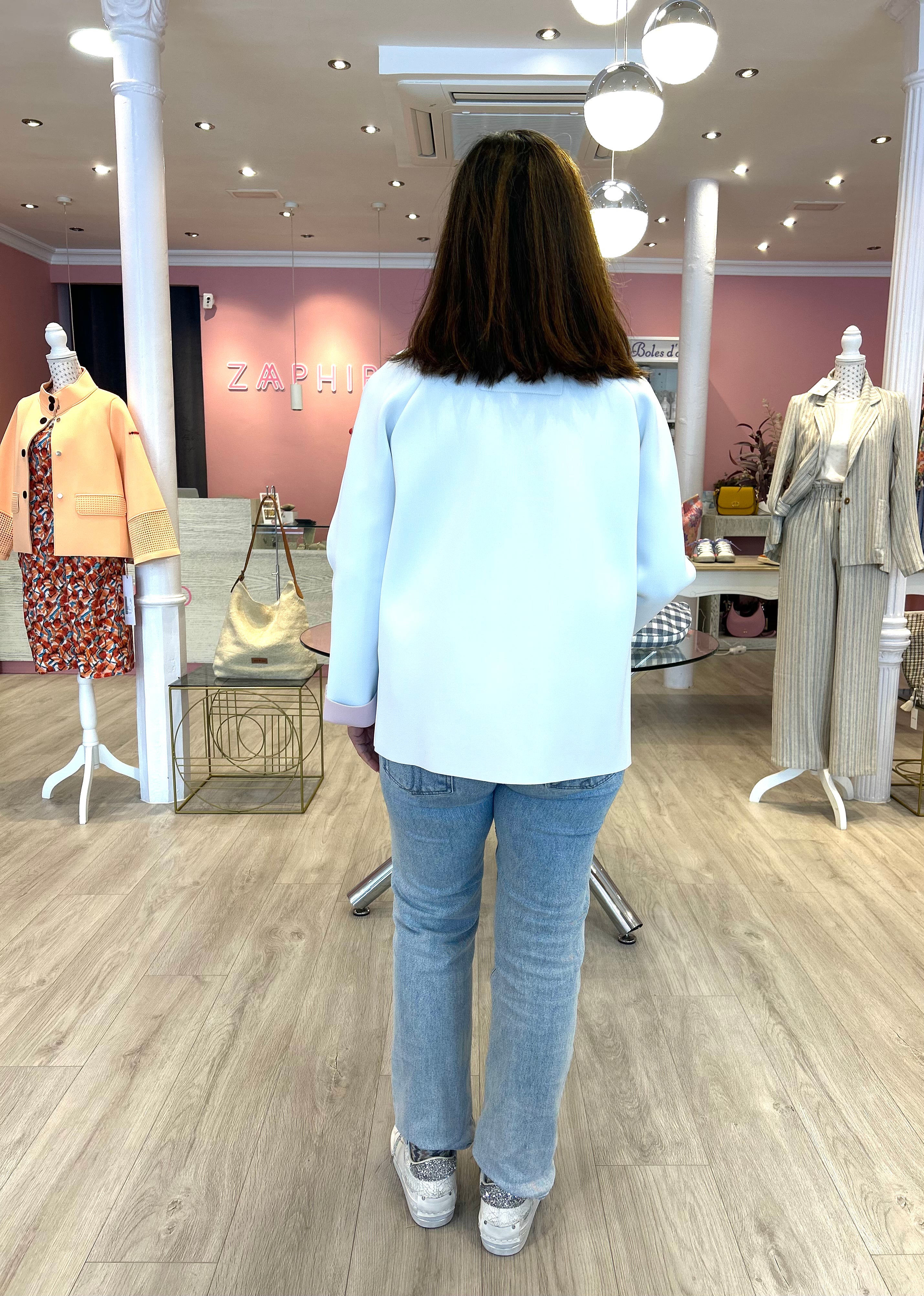 Chaqueta DICHI Sadhia en color blanco y rosa palo con tejido neopreno.