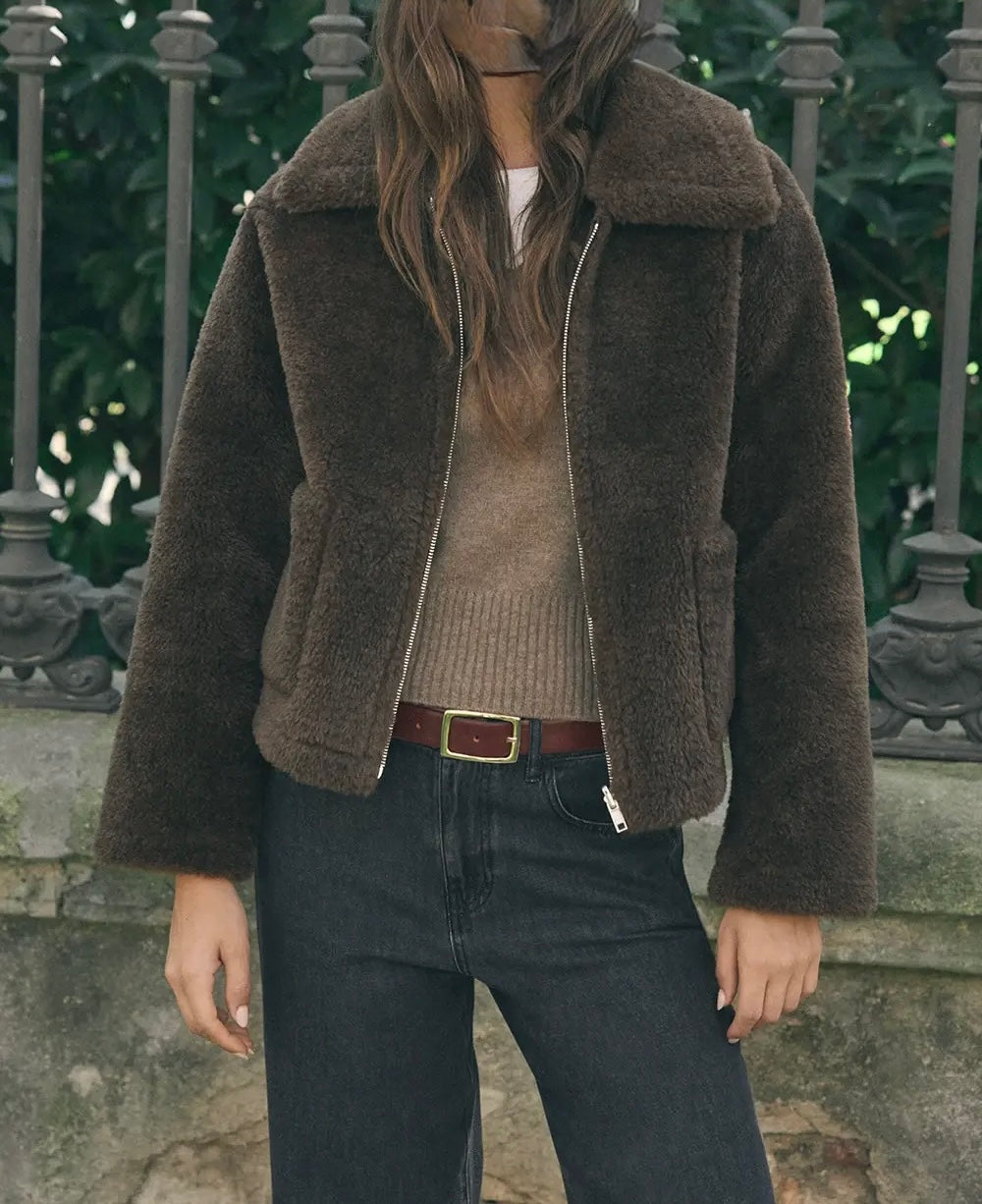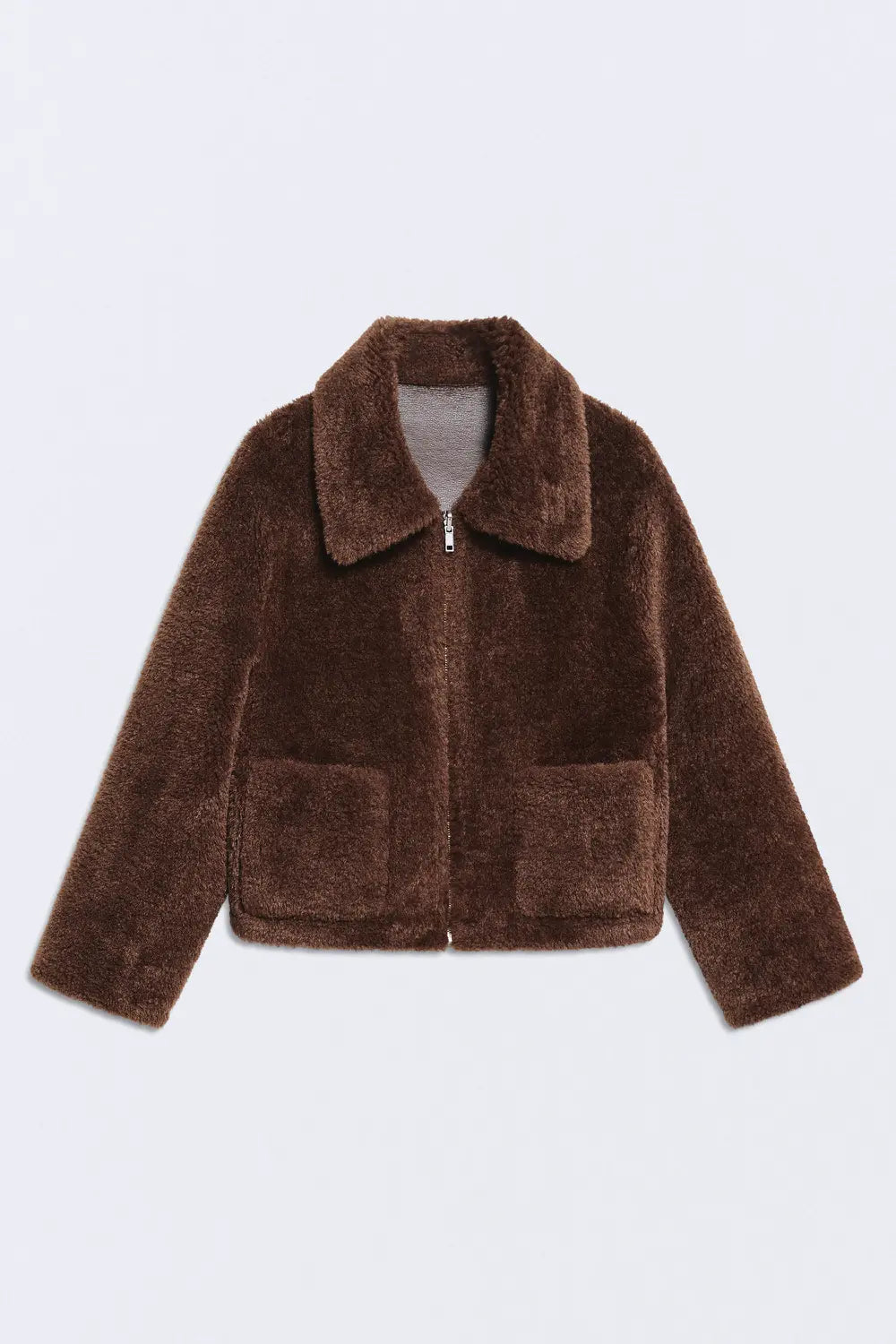 Chaqueta eseOese Winnie de pelo sintético reversible confeccionada con fibras recicladas.