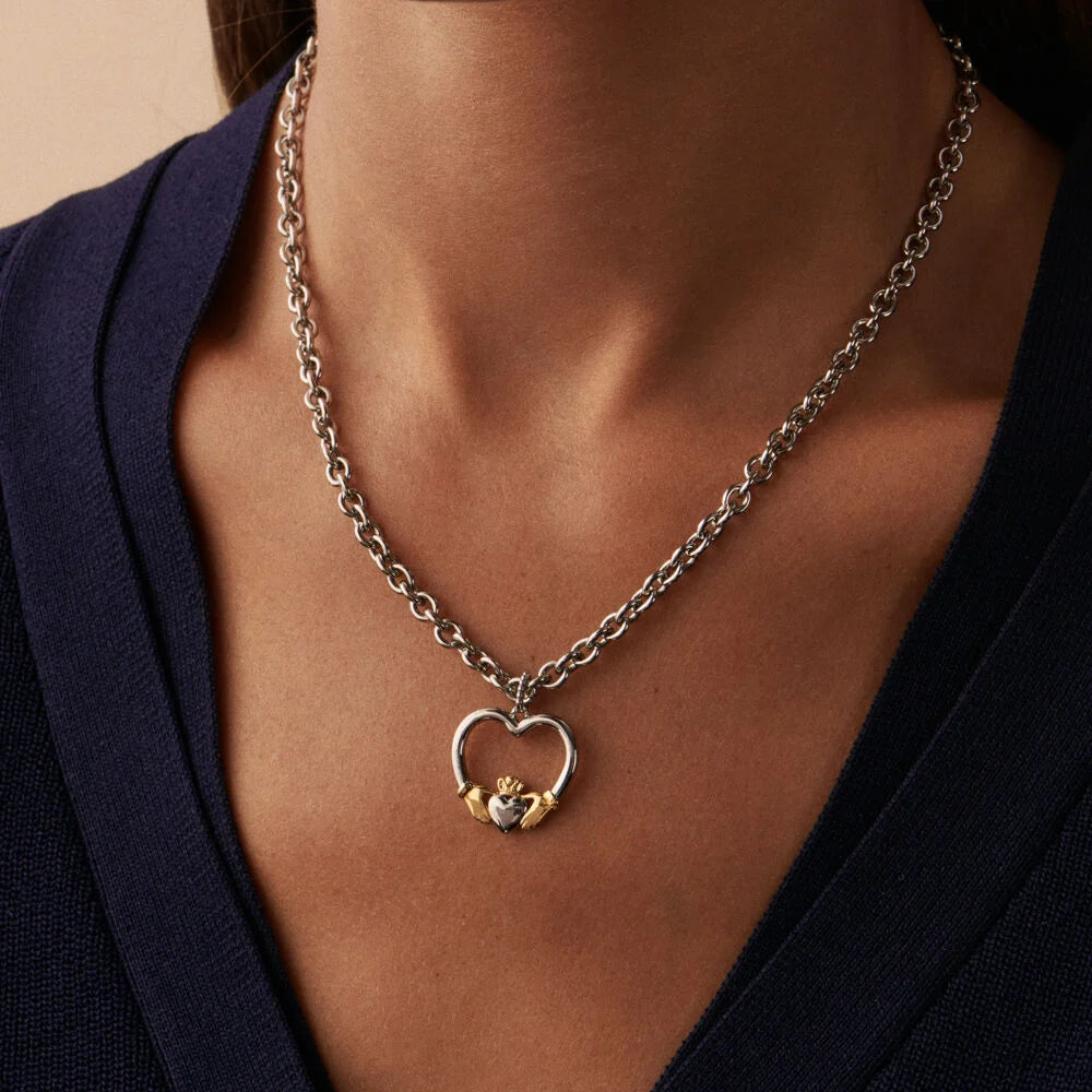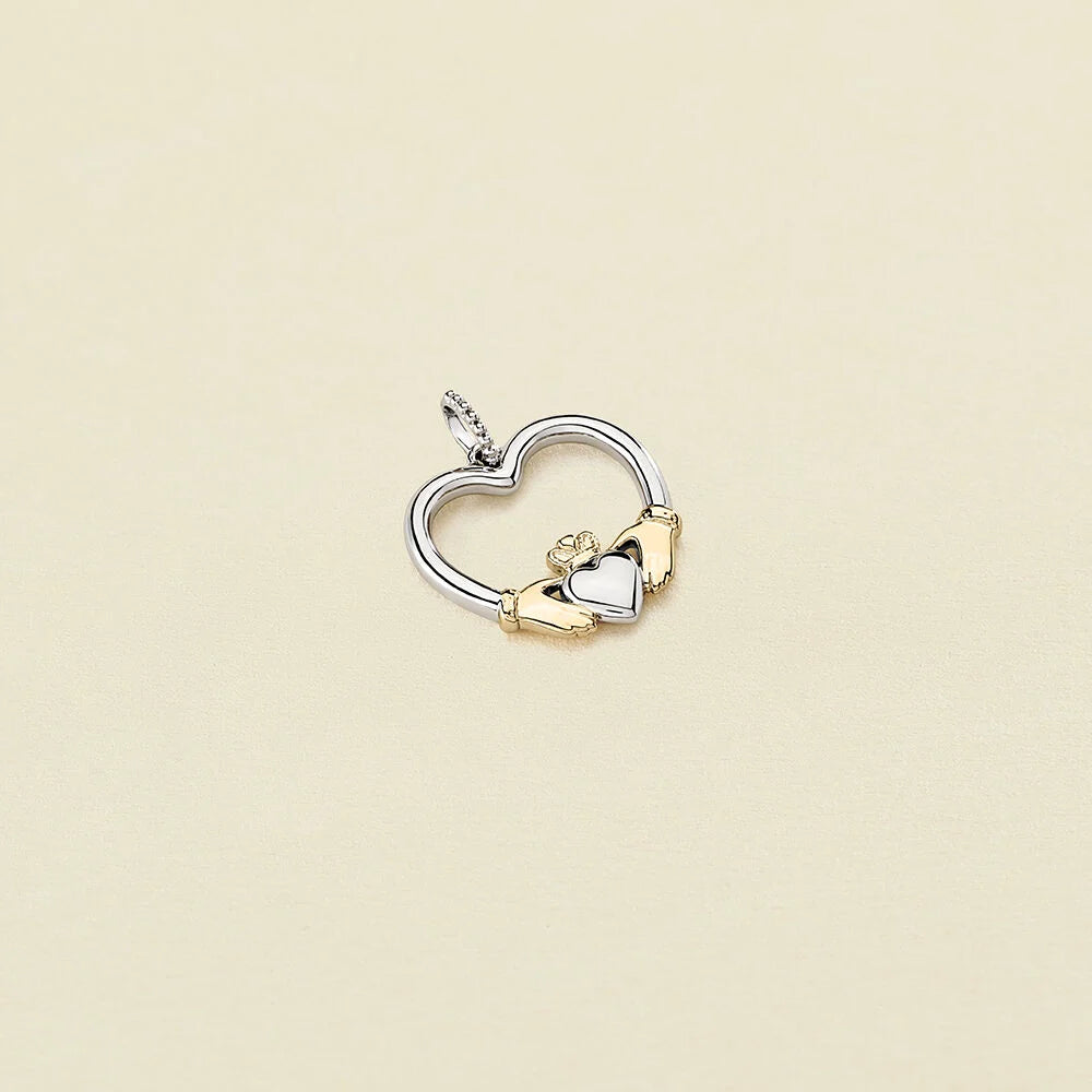 El colgante Agatha Paris Abrazo pertenece a la colección Lucky de María Pombo, un amuleto que acompañará siempre a la amistad verdadera. El símbolo de Claddagh está formado por una corona y dos manos que sostienen un corazón. Las manos representan la amistad, el corazón, el amor y la corona, la lealtad.