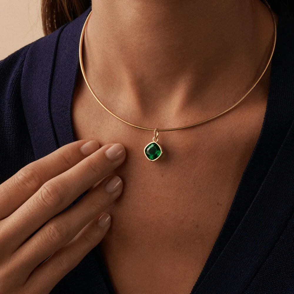 Colgante Agatha Paris circonita en verde y acabado dorado.