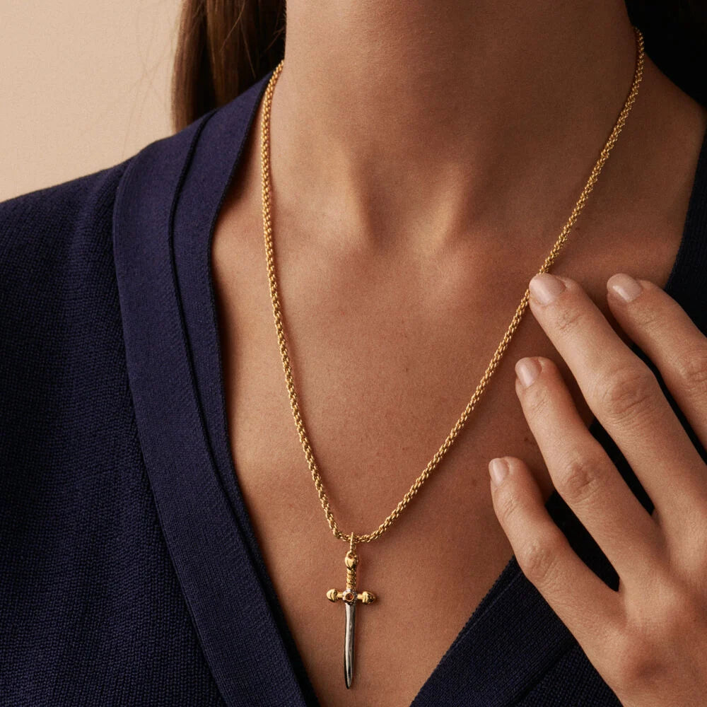 El colgante Agatha Paris Daga pertenece a la colección Lucky de María Pombo, un amuleto que da el poder de poder con todo.